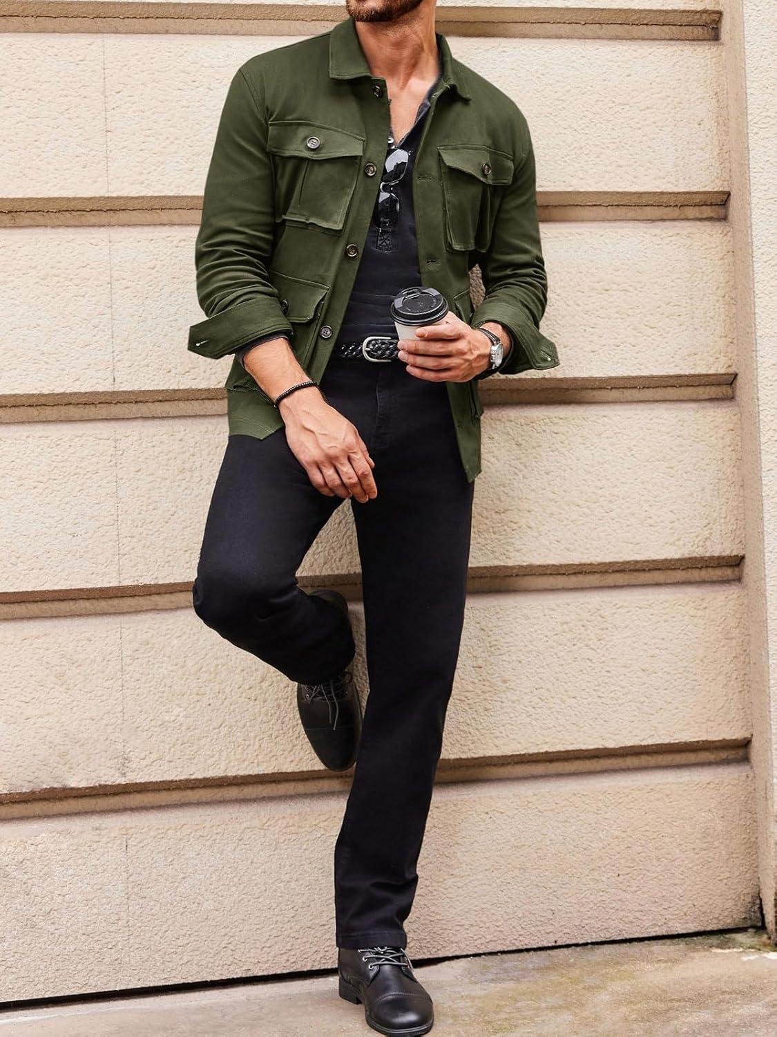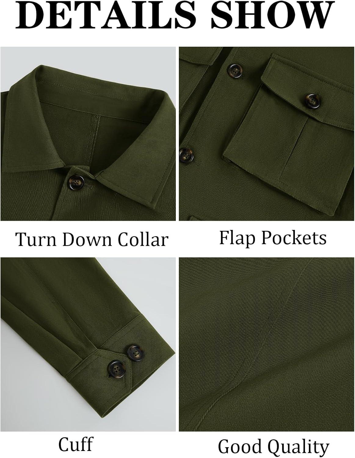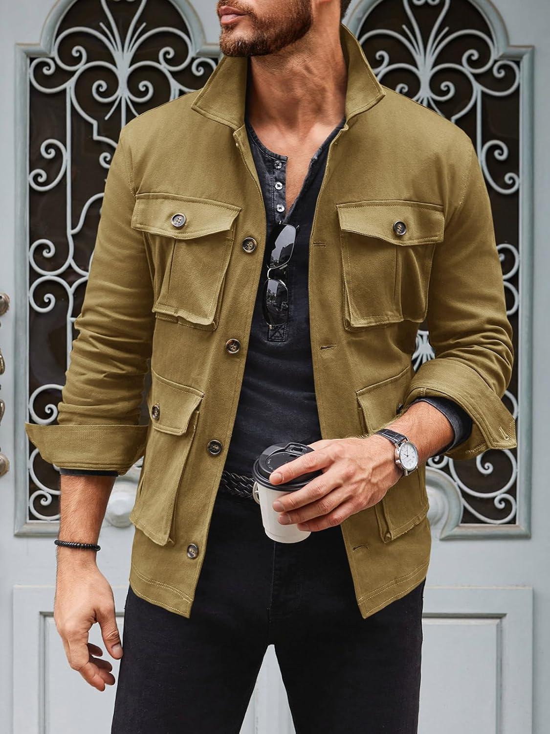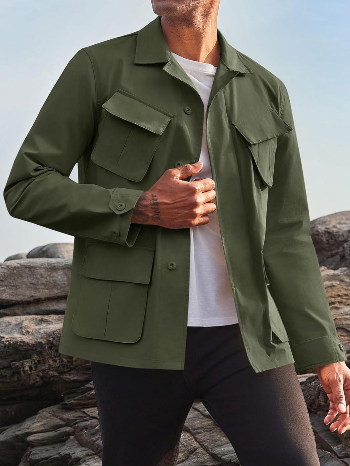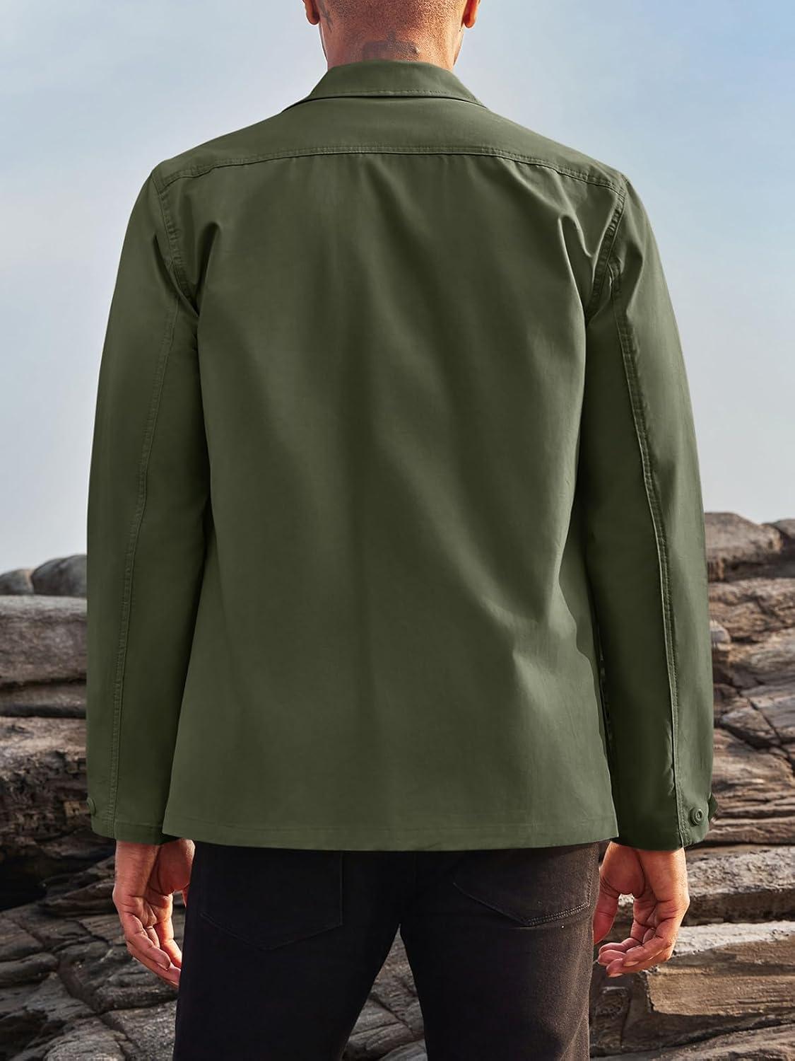 Runcati Mens Lightweight Safari Jacket Casual Button Up Jacket Windproof Work Coat with Pockets(Army Green)