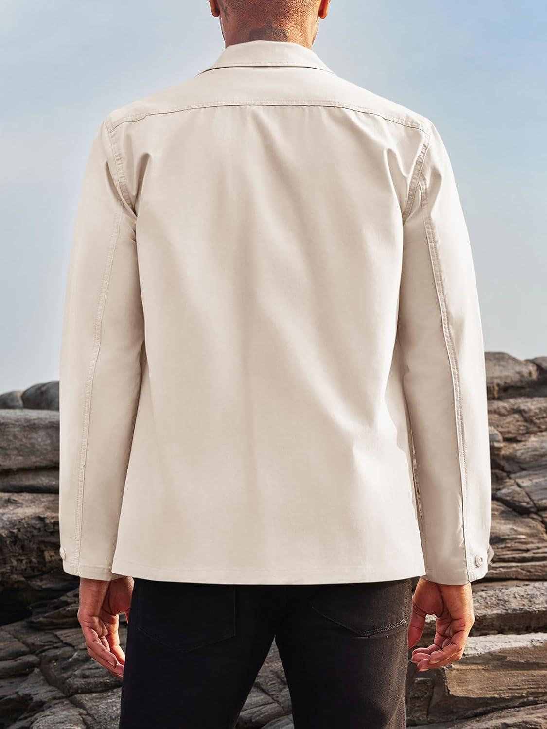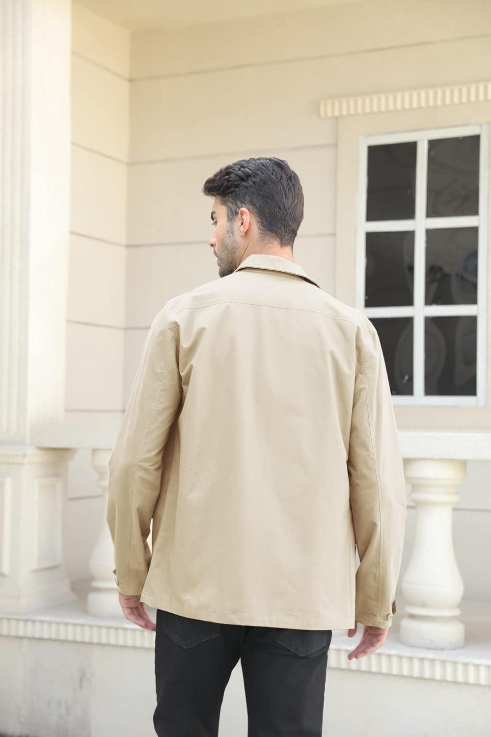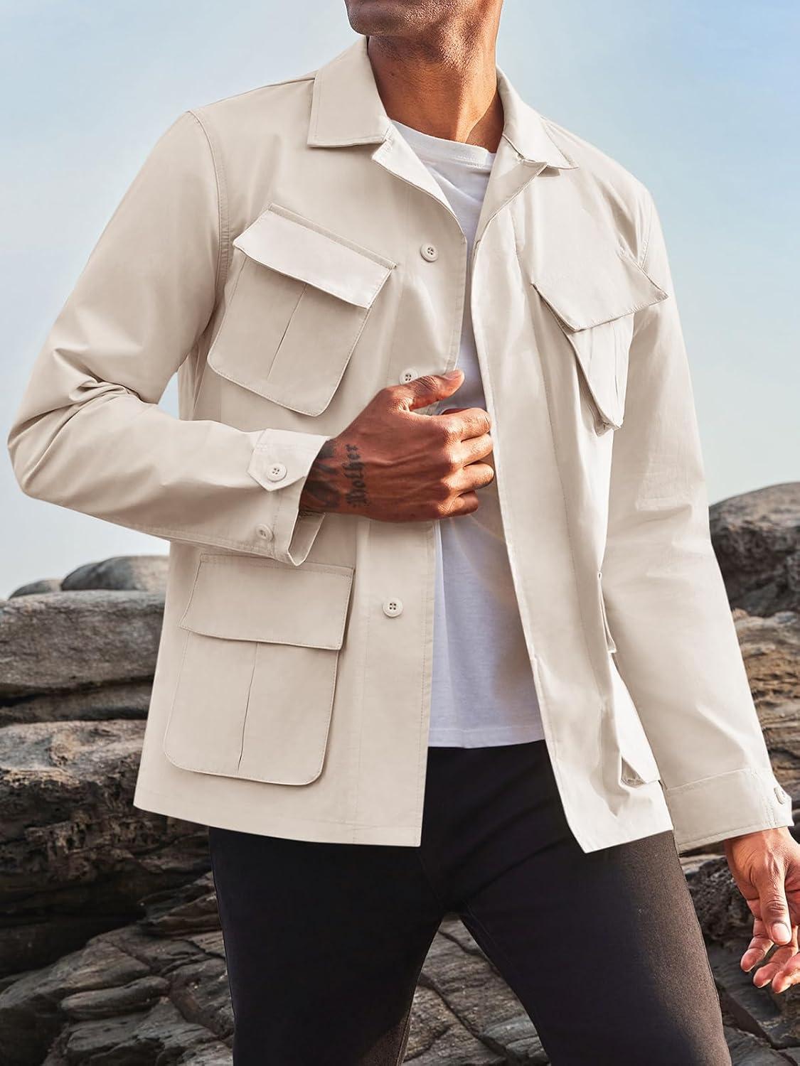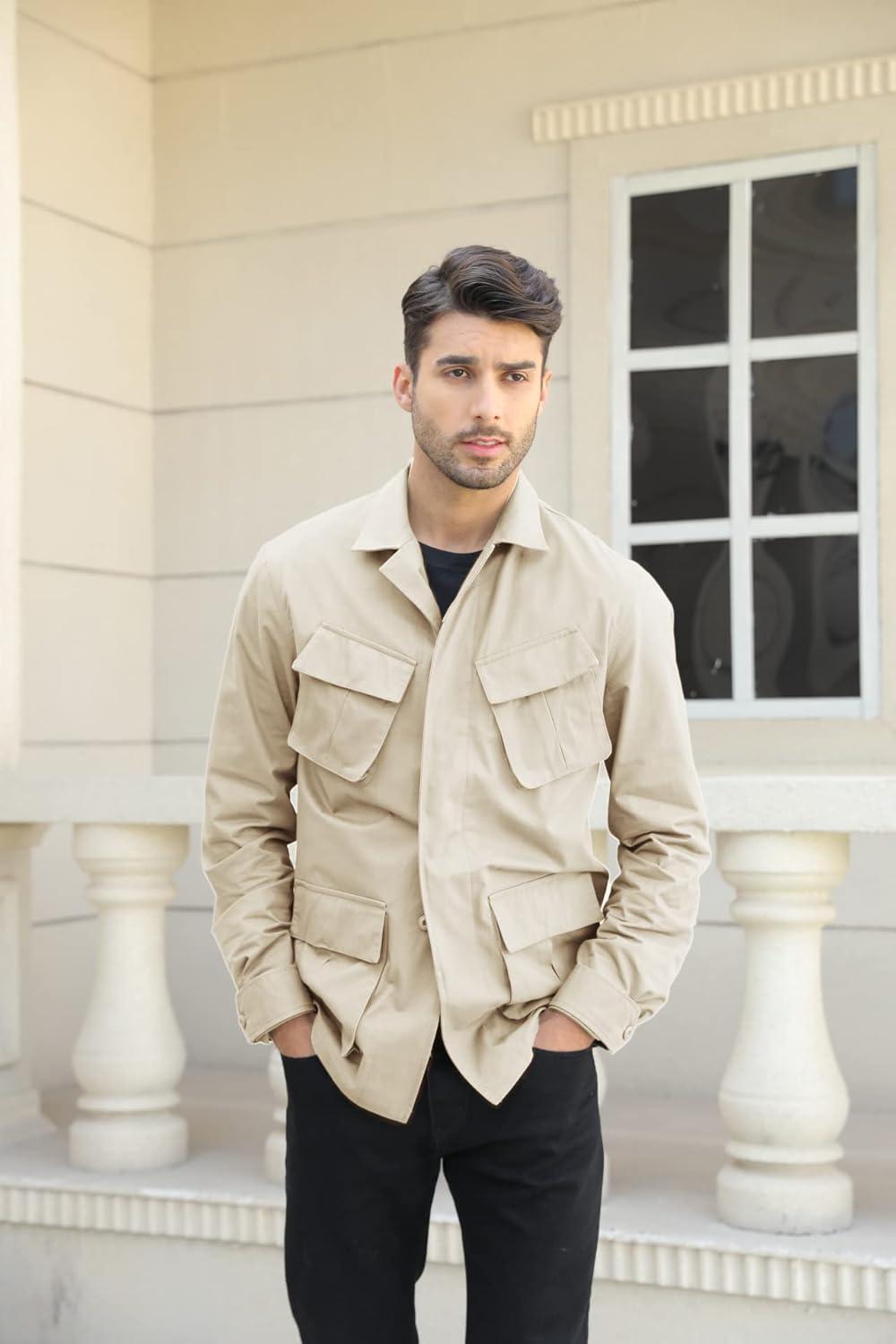 Runcati Mens Lightweight Safari Jacket Casual Button Up Jacket Windproof Work Coat with Pockets(Khaki)