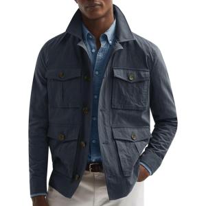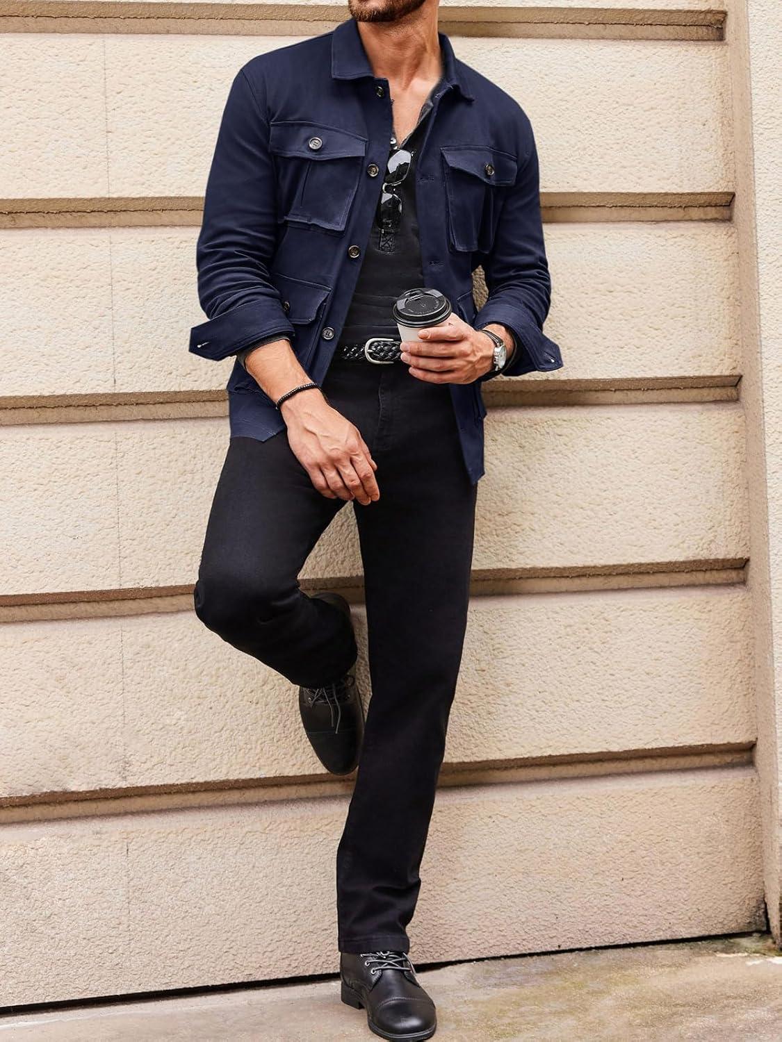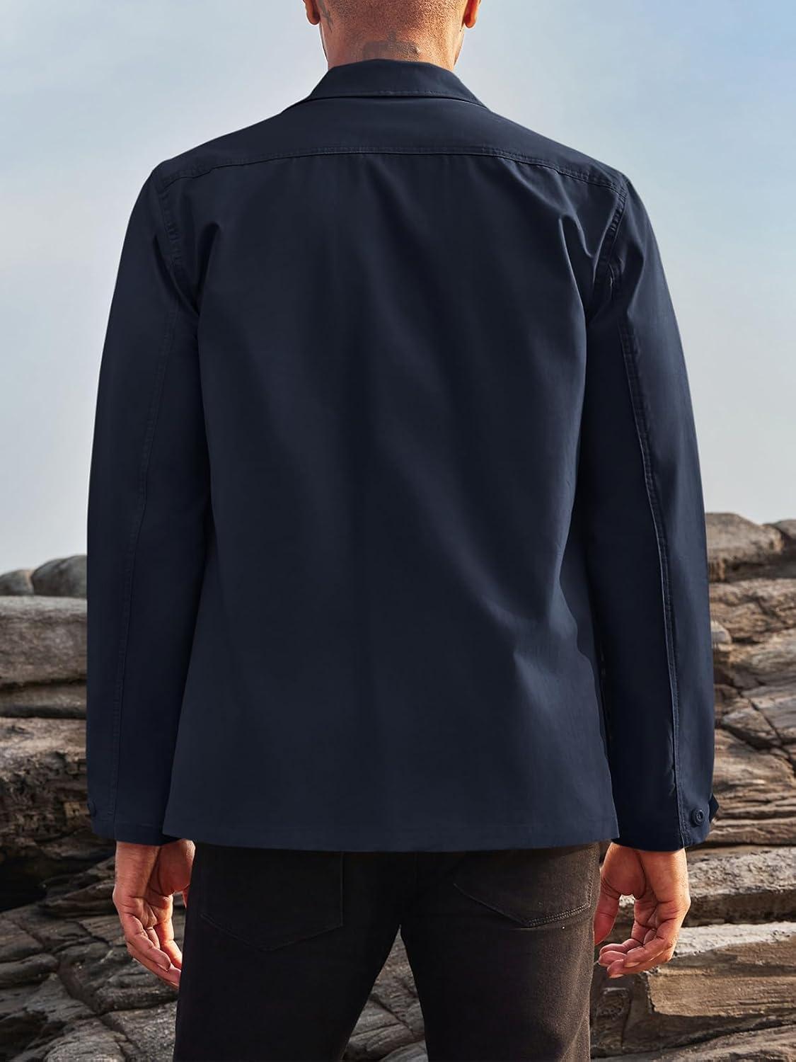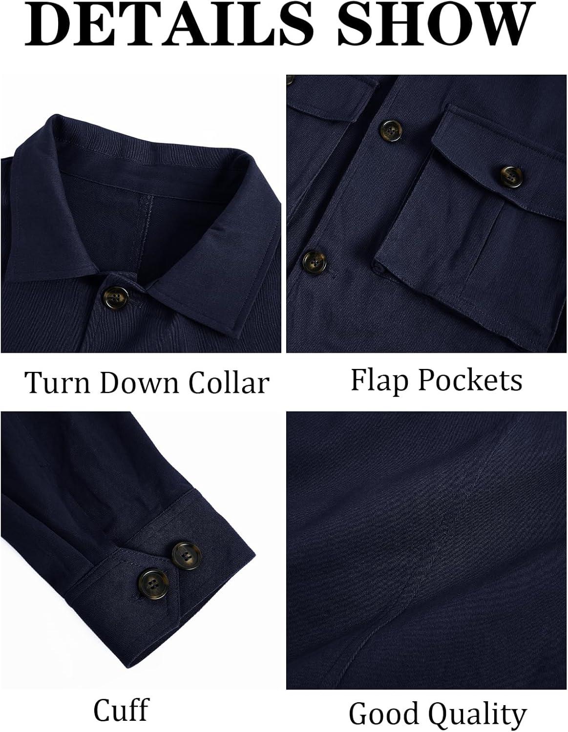 Runcati Mens Lightweight Safari Jacket Casual Button Up Jacket Windproof Work Coat with Pockets(Navy Blue)