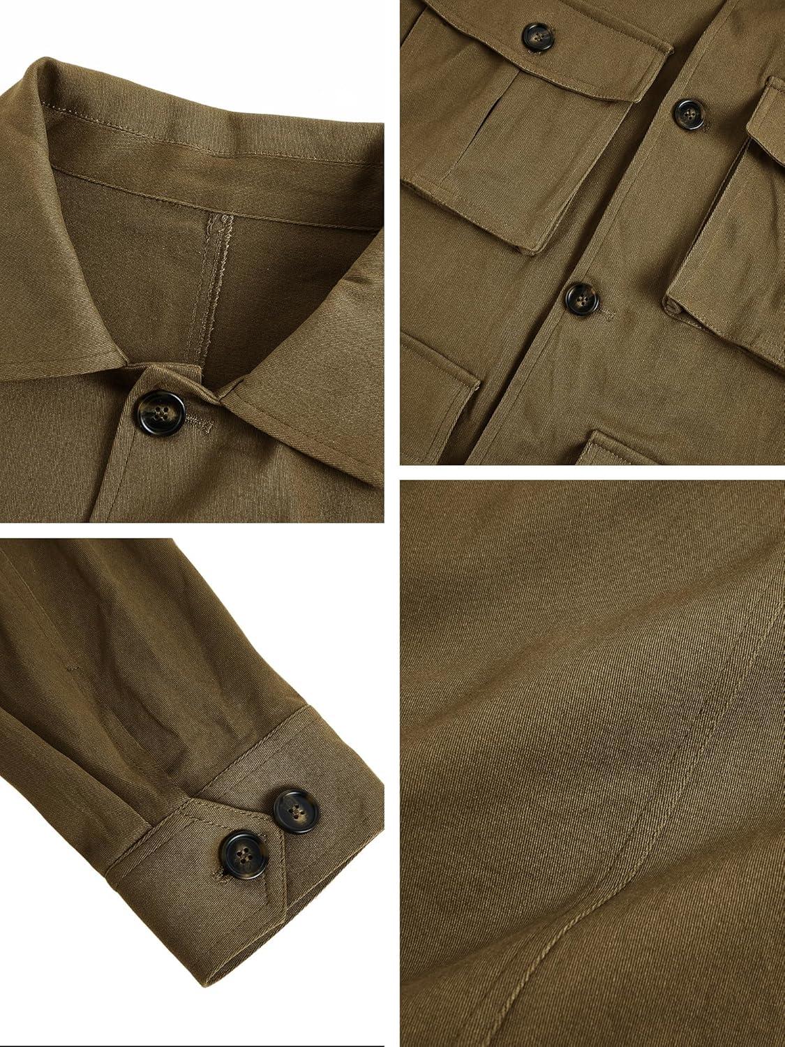 Runcati Mens Lightweight Safari Jacket Button Up Cotton Outdoor Military Cargo Long Sleeve Outwear(Army Green)