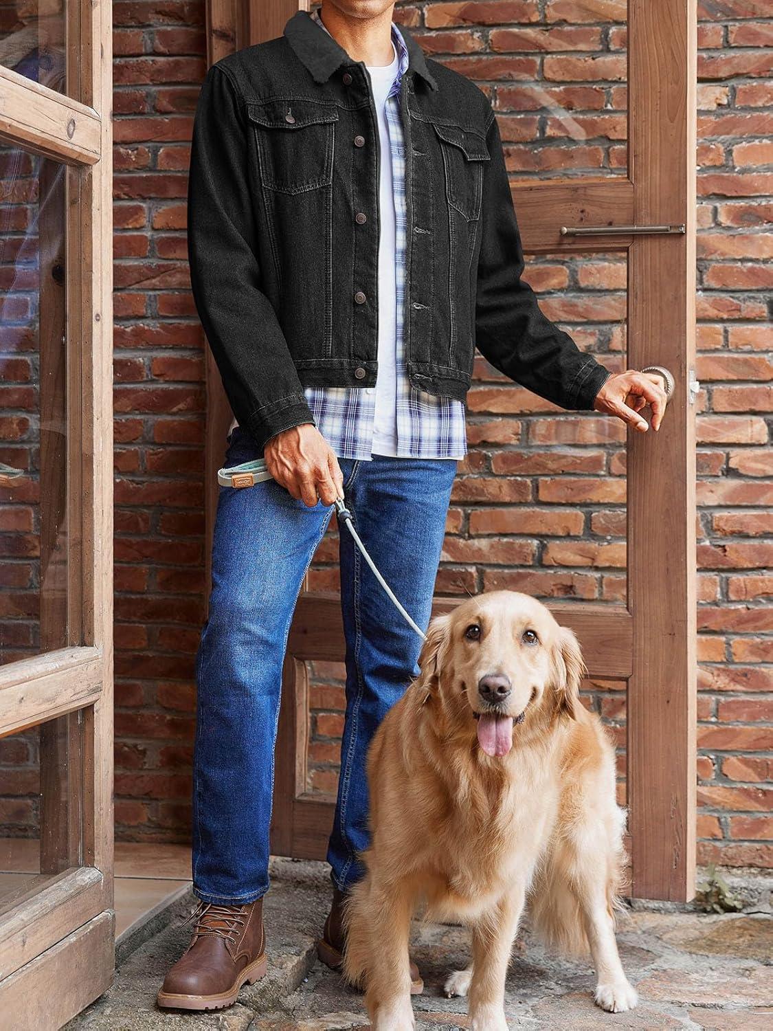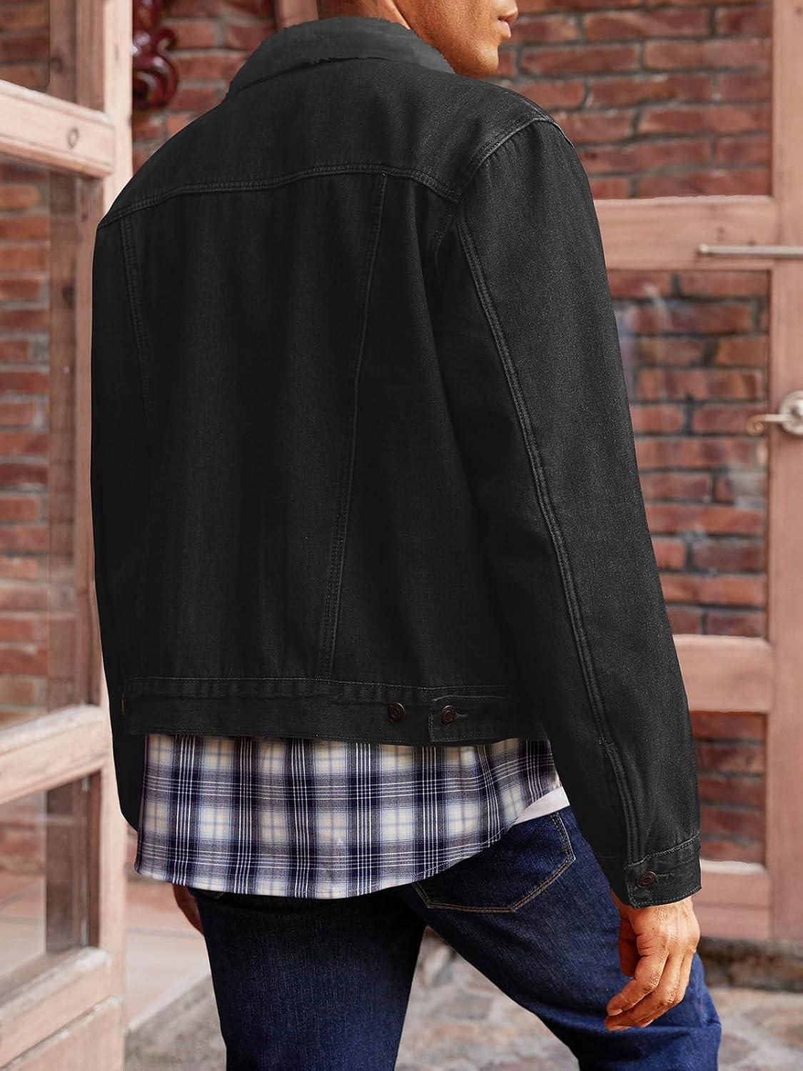 Runcati Mens Sherpa Fleece Lined Denim Jacket Casual Winter Warm Button Down Trucker Jacket Coat with Pocket(Black)