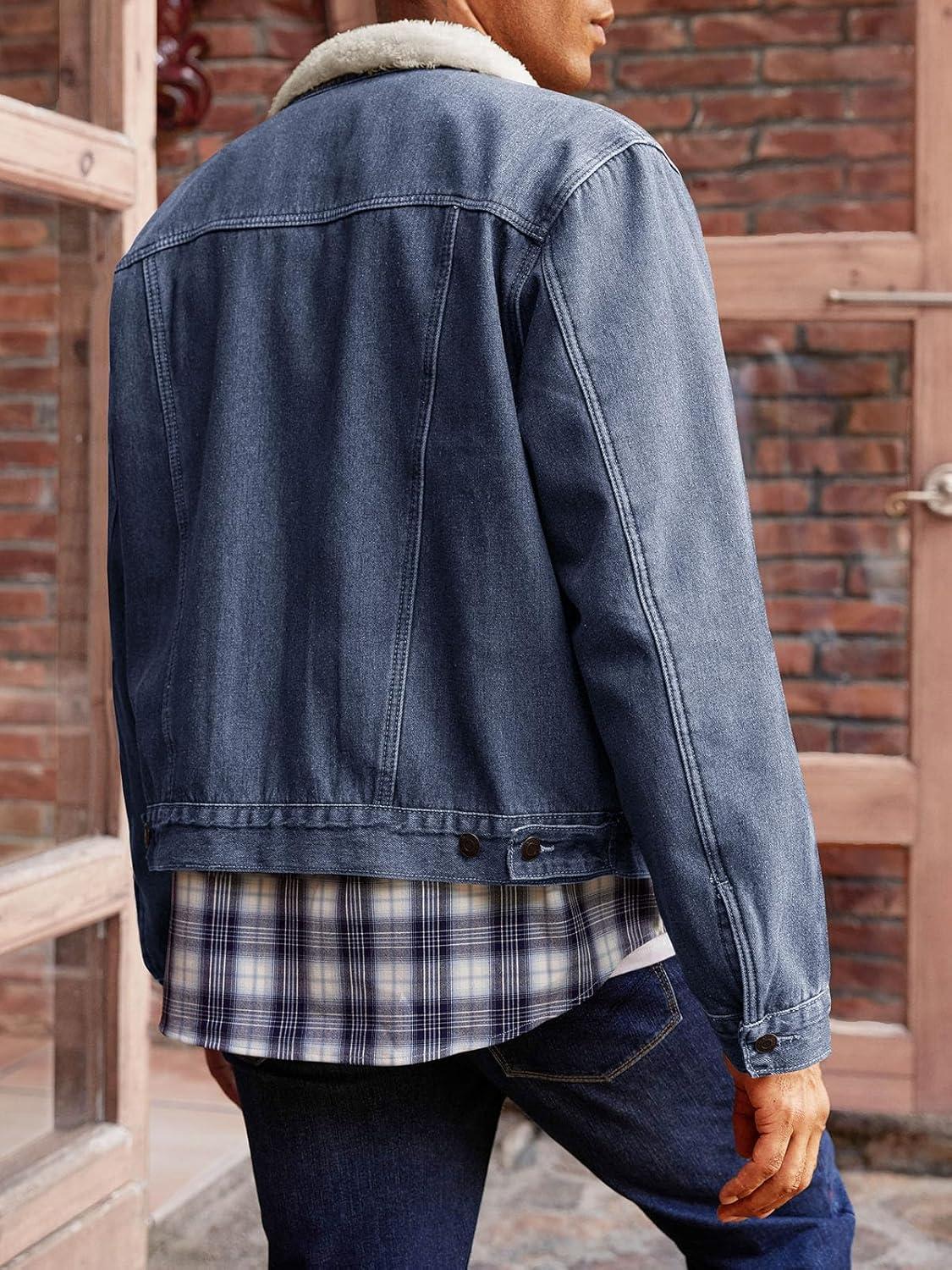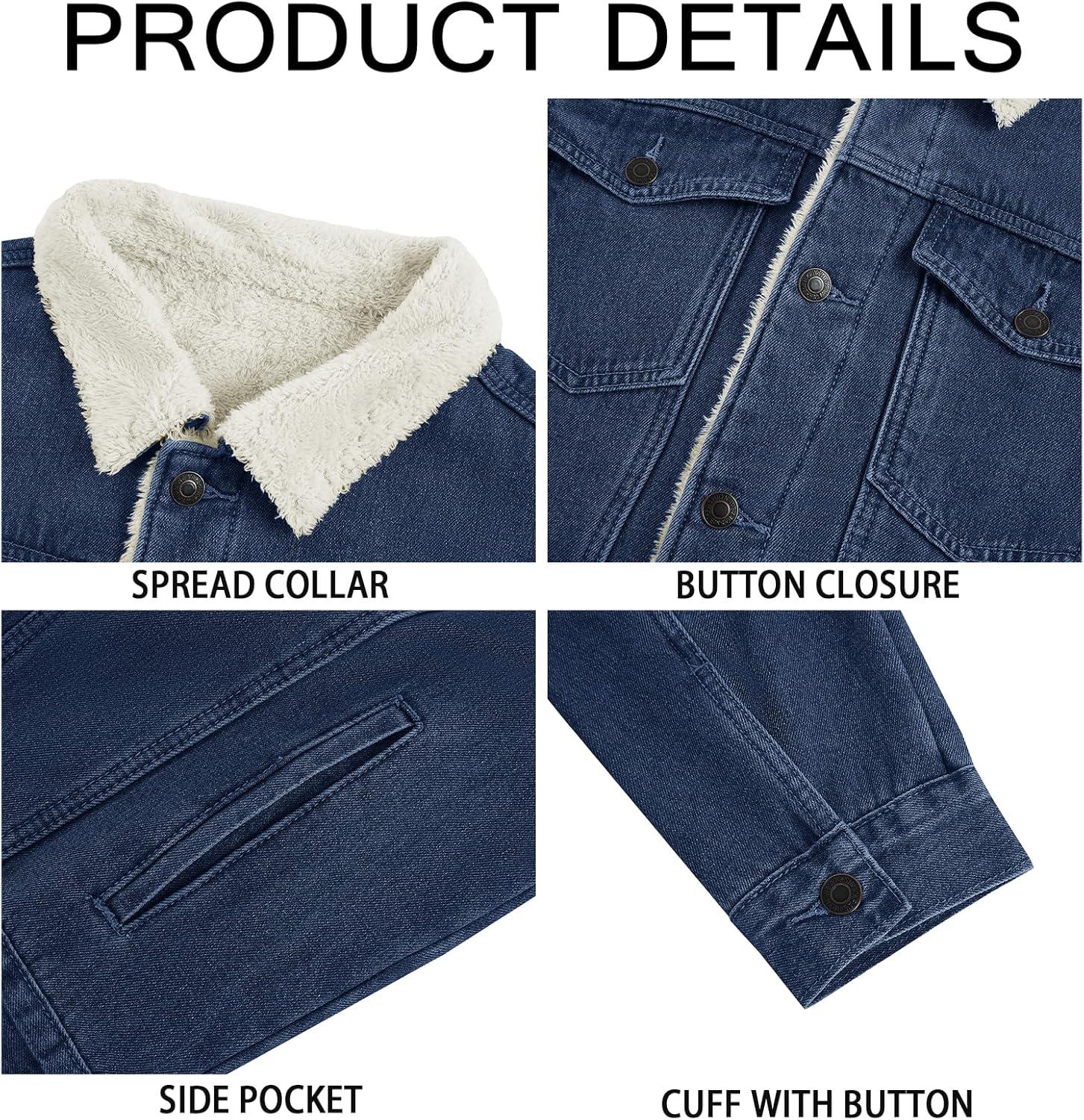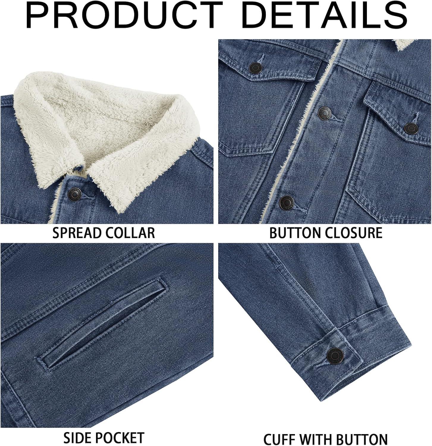 Runcati Mens Sherpa Fleece Lined Denim Jacket Casual Winter Warm Button Down Trucker Jacket Coat with Pocket(Blue)