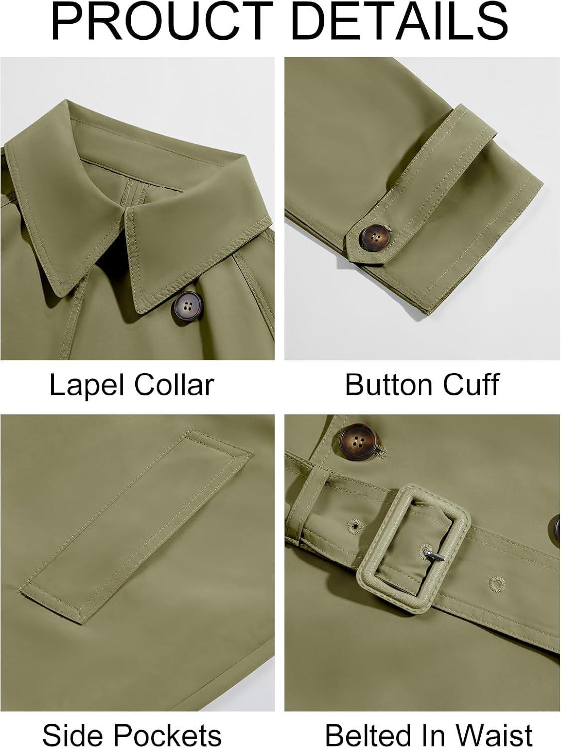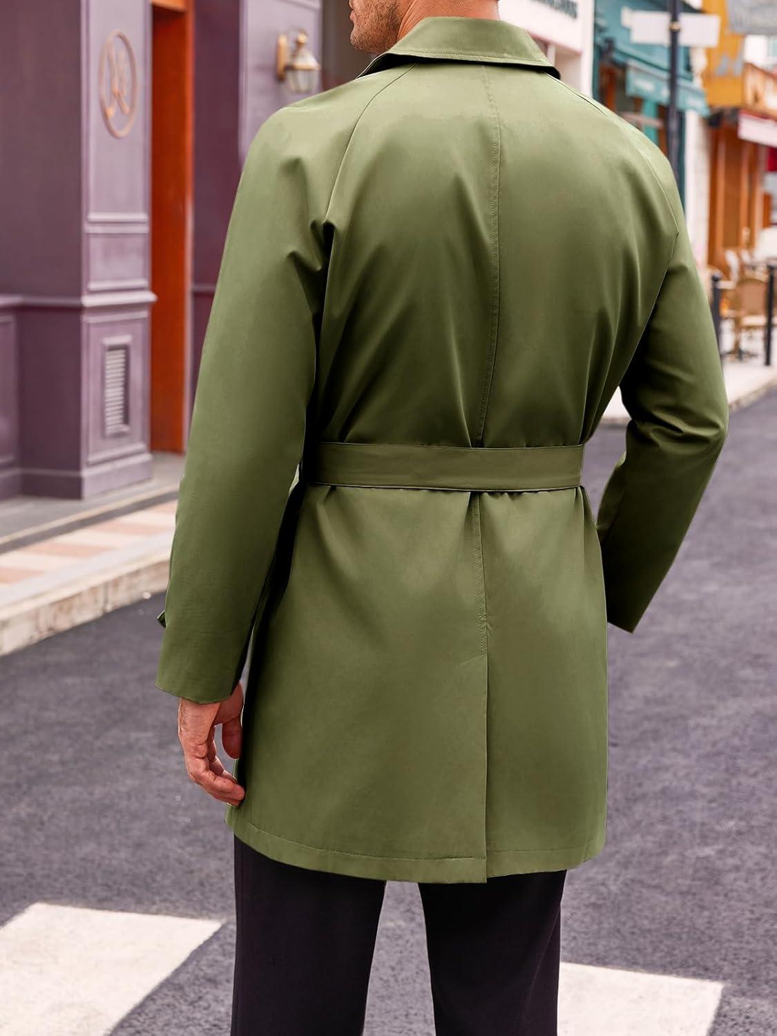 Runcati Mens Double Breasted Trench Coat Notched Lapel Windbreaker Jackets Causal Overcoat With Belt(Army Green)