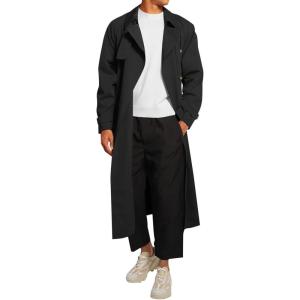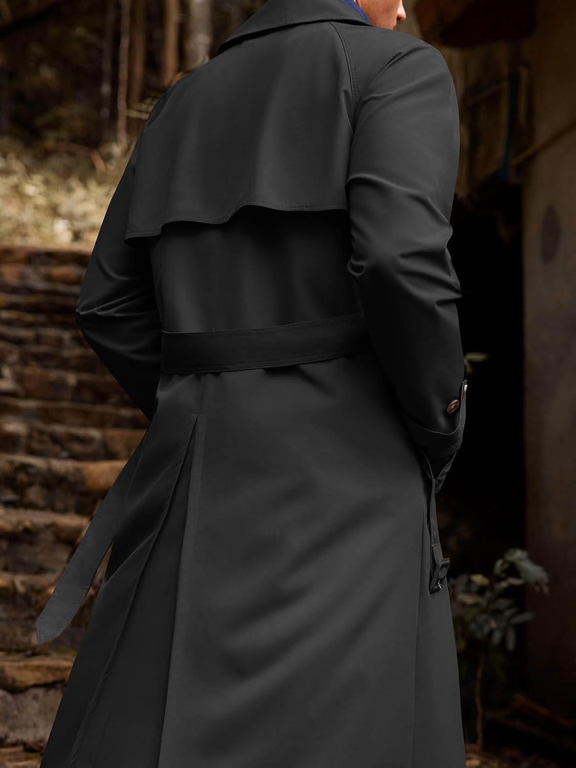 Runcati Mens Trench Coat Double Breasted Long Jacket Casual Windbreaker Notched Lapel Belted Overcoat(Black)