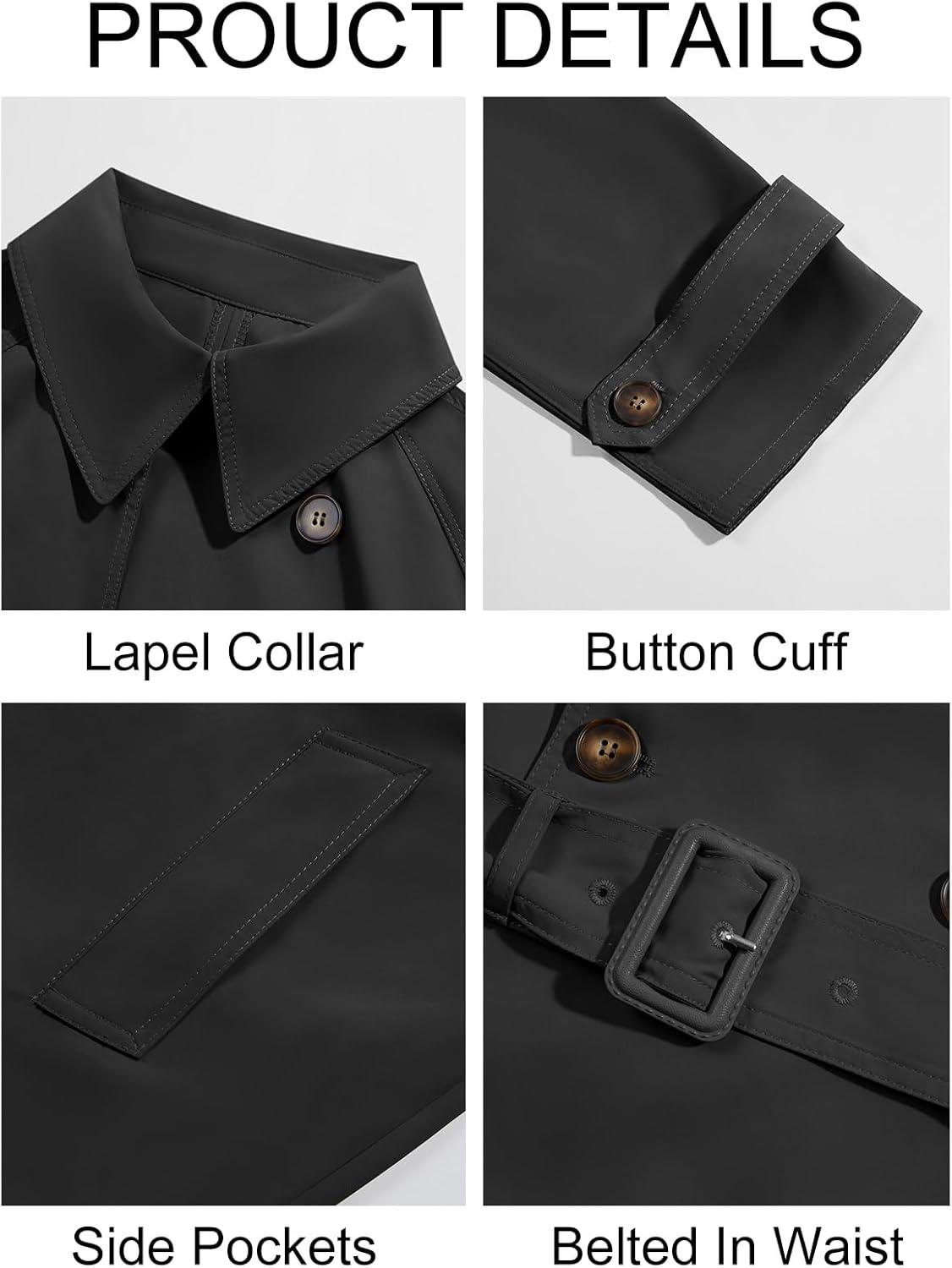 Runcati Mens Double Breasted Trench Coat Notched Lapel Windbreaker Jackets Causal Overcoat With Belt(Black)