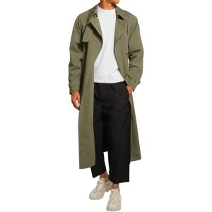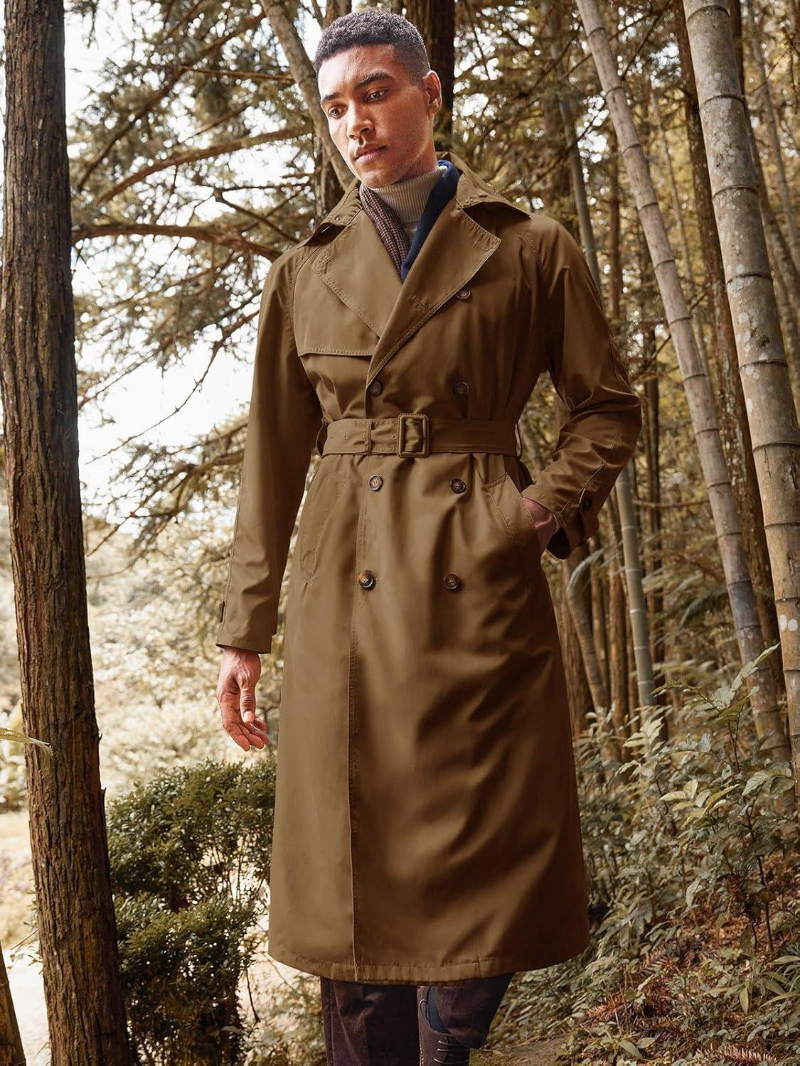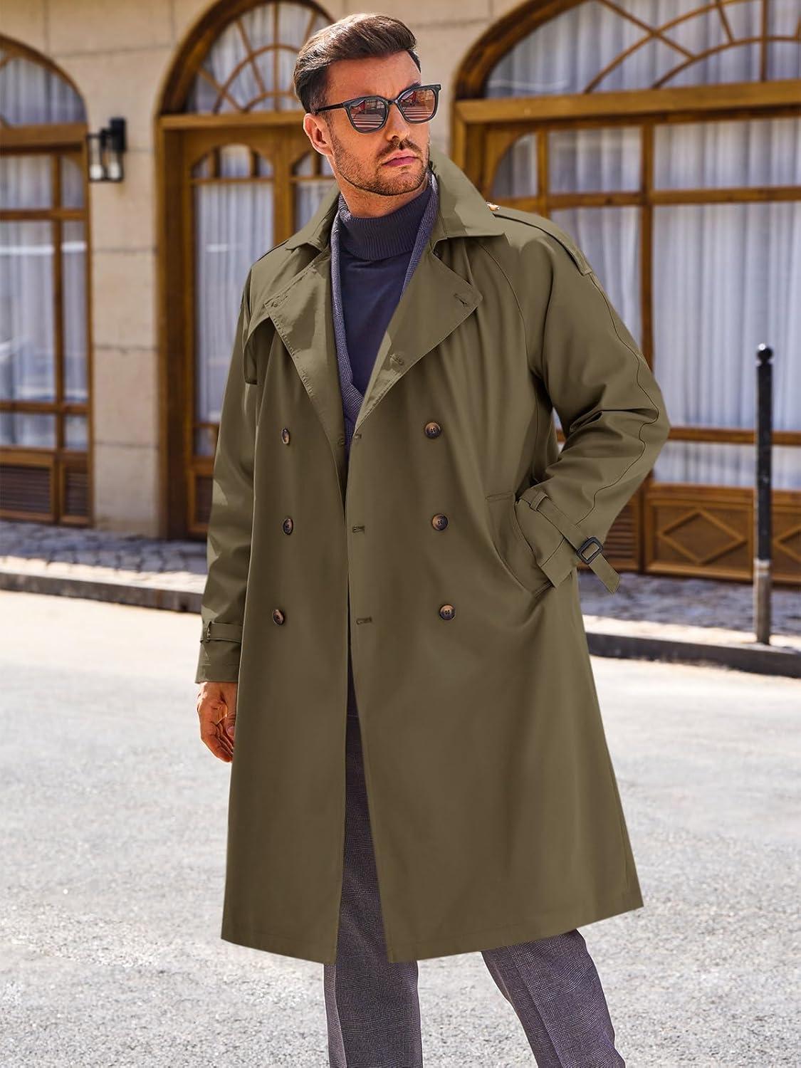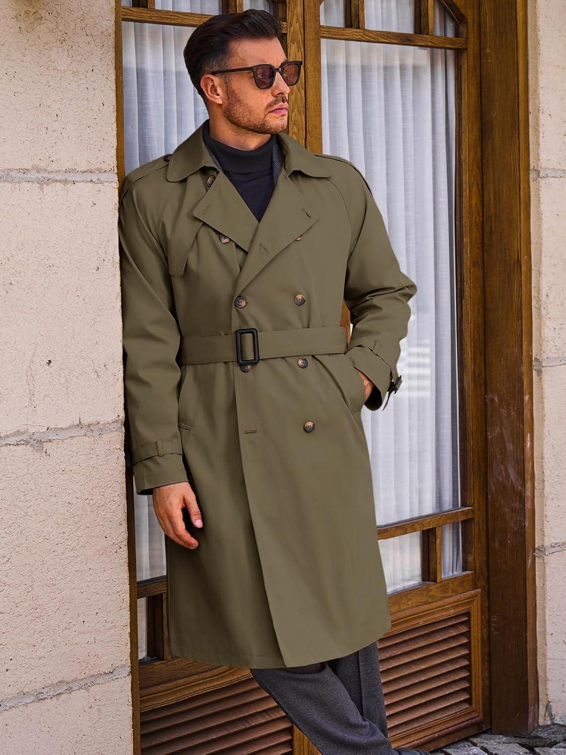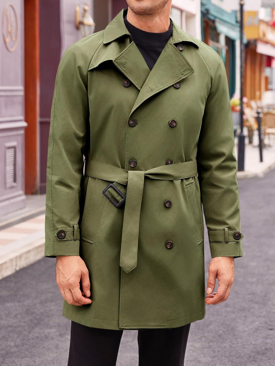 Runcati Mens Trench Coat Double Breasted Long Jacket Casual Windbreaker Notched Lapel Belted Overcoat(Army Green)