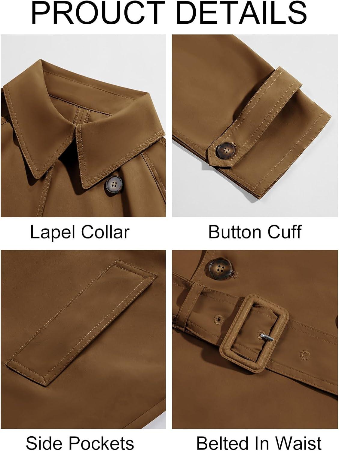 Runcati Mens Trench Coat Double Breasted Belted Windbreaker Jackets Lapel Lightweight Long Jacket Casual Overcoat(Brown)
