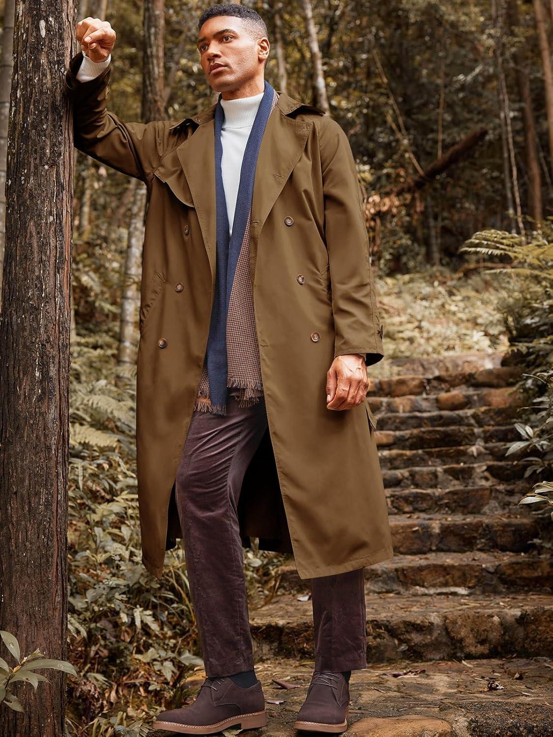 Runcati Mens Full Length Trench Coat Notched Lapel Long Jacket Double Breasted Classic Winter Overcoat(Coffee)