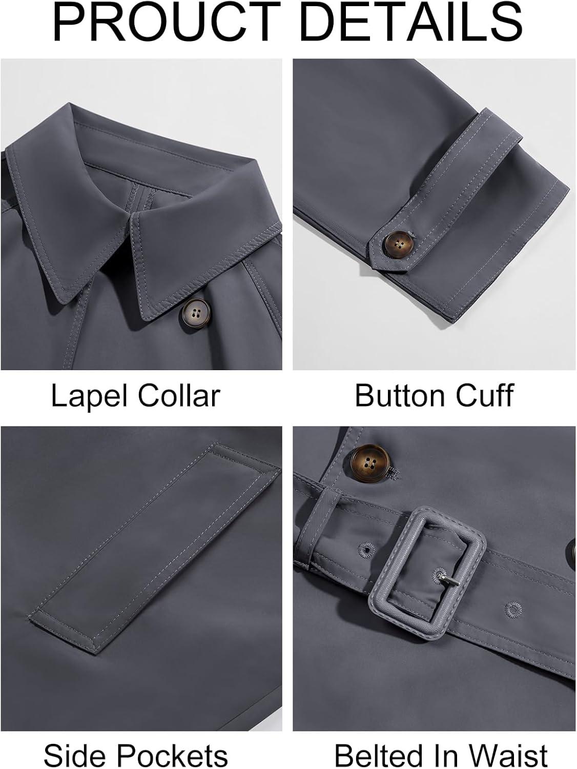 Runcati Mens Trench Coat Double Breasted Belted Windbreaker Jackets Lapel Lightweight Long Jacket Casual Overcoat(Dark Grey)