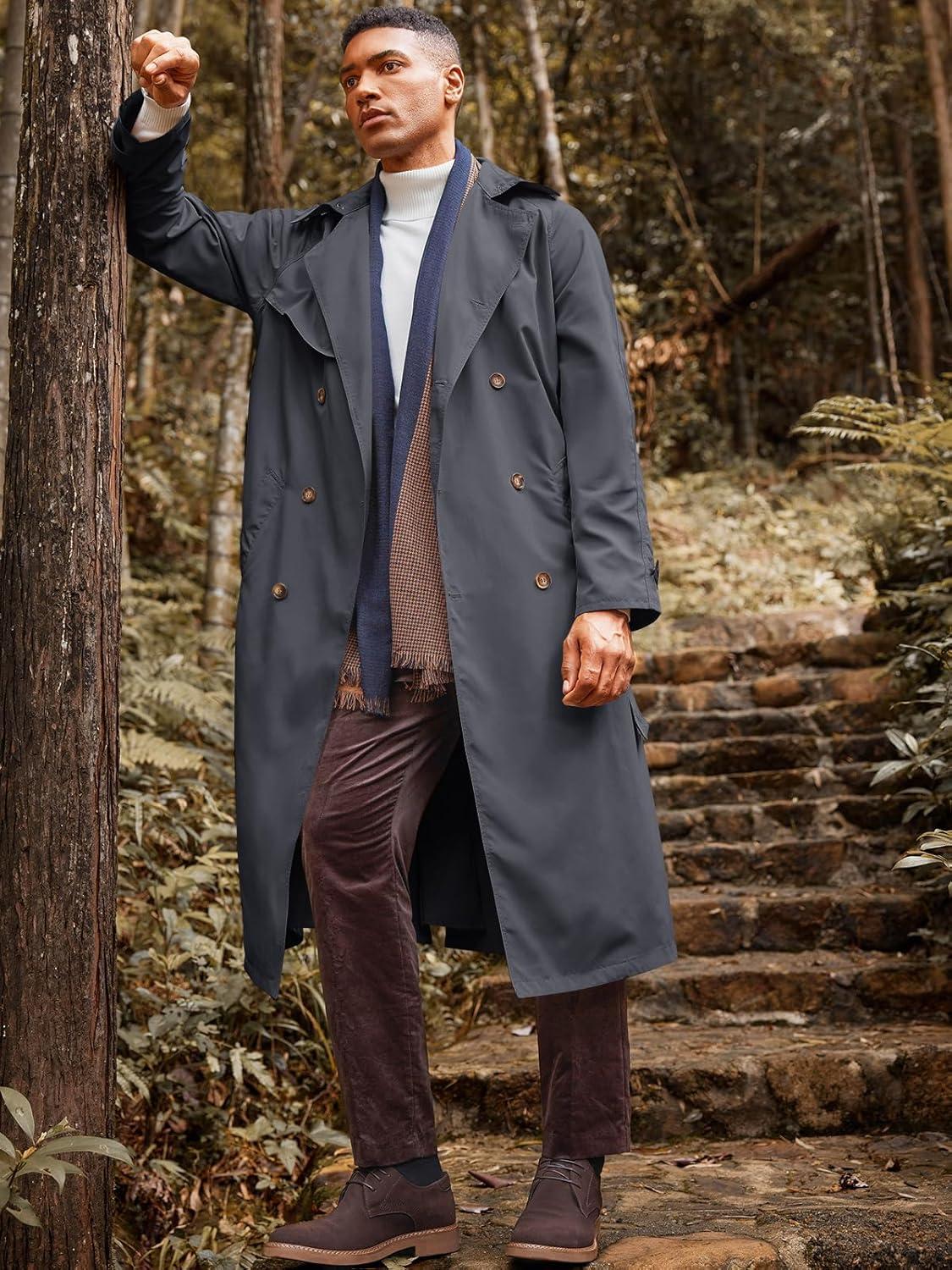 Runcati Mens Full Length Trench Coat Notched Lapel Long Jacket Double Breasted Classic Winter Overcoat(Grey)