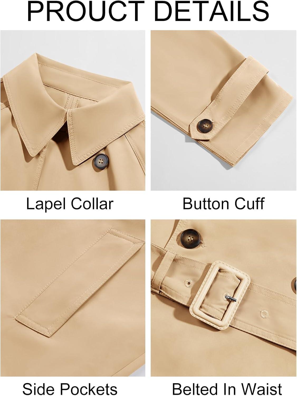 Runcati Mens Double Breasted Trench Coat Notched Lapel Windbreaker Jackets Causal Overcoat With Belt(Khaki)