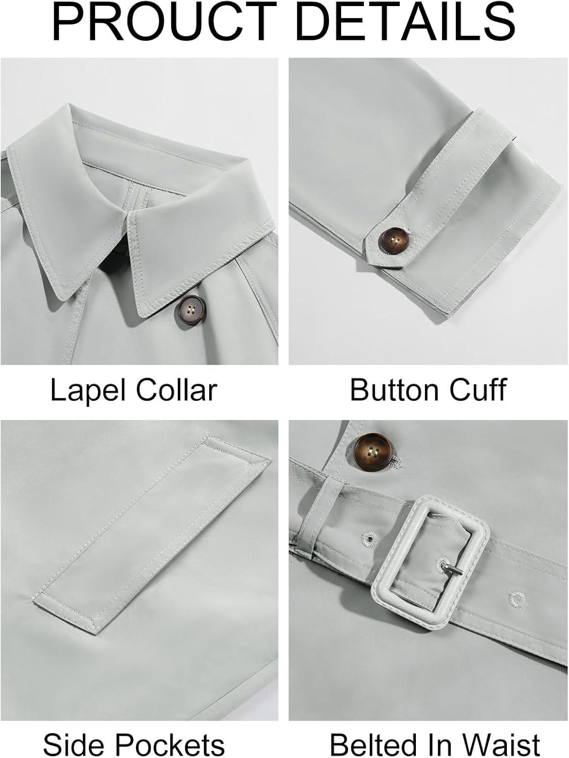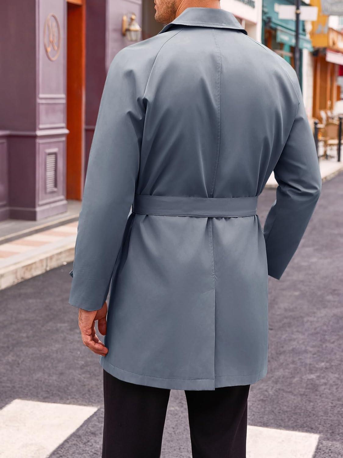 Runcati Mens Double Breasted Trench Coat Notched Lapel Windbreaker Jackets Causal Overcoat With Belt(Light Grey)