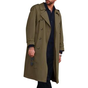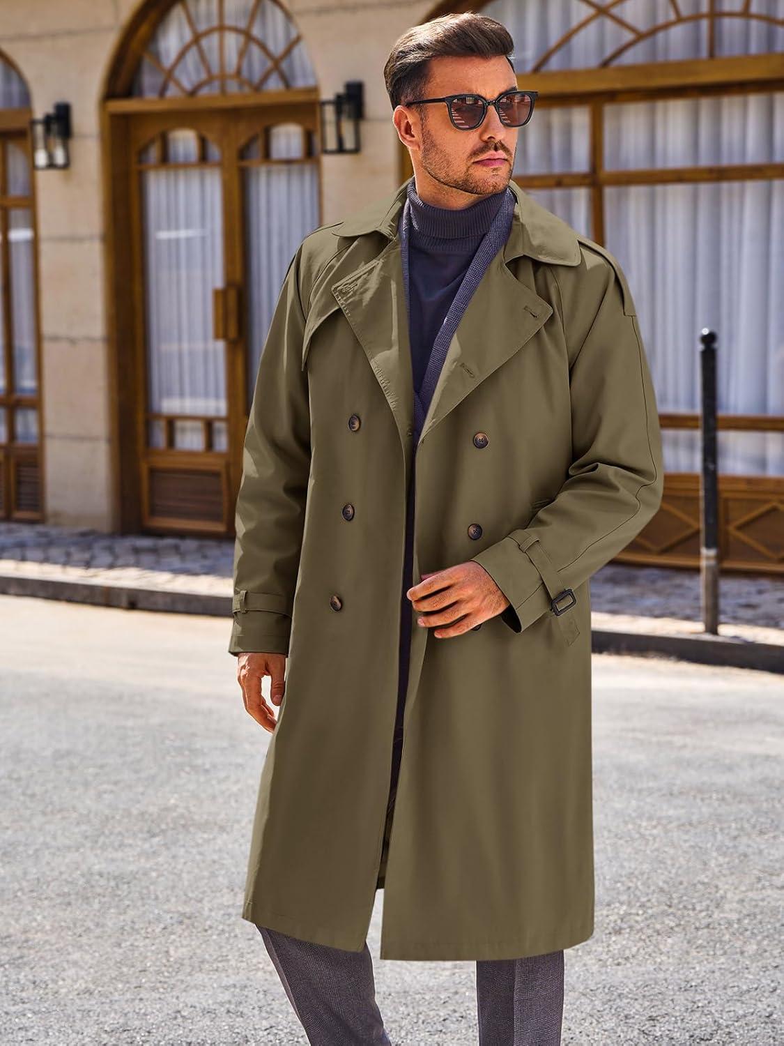 Runcati Mens Full Length Trench Coat Notched Lapel Long Jacket Double Breasted Classic Winter Overcoat(Army Green)