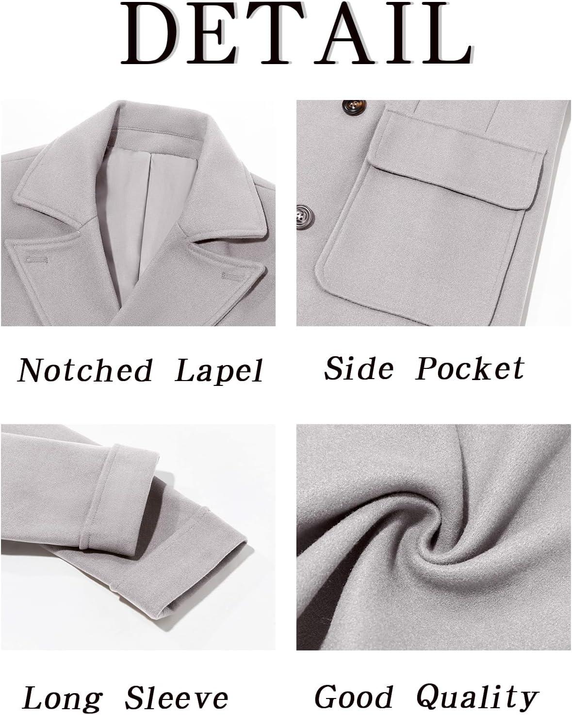 Runcati Mens Trench Coat Notch Lapel Double Breasted Peacoat Wool Blend Casual Long Overcoat(Grey)