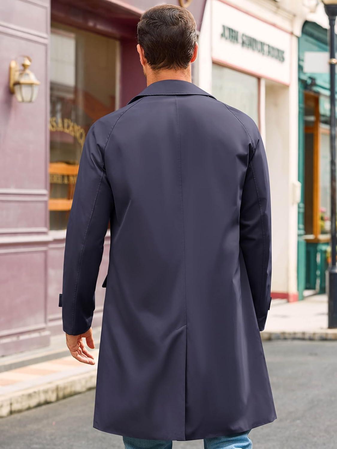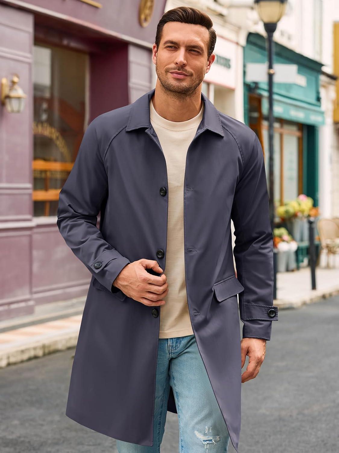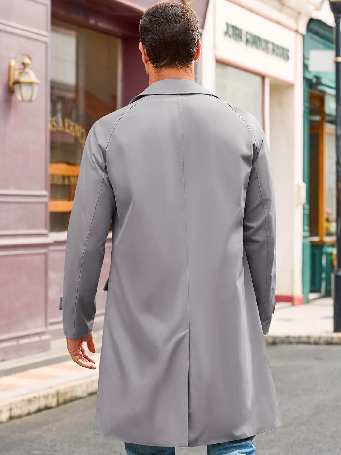 Runcati Mens Trench Coat Slim Fit Single Breasted Long Windbreaker Jacket Classic Lapel Casual Overcoat(Black Grey)