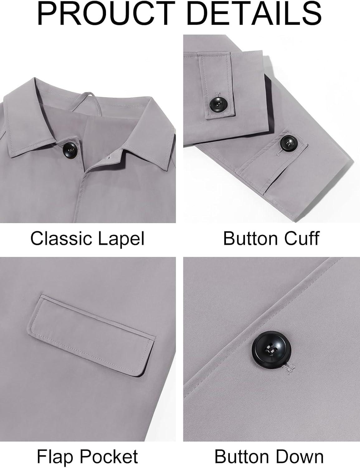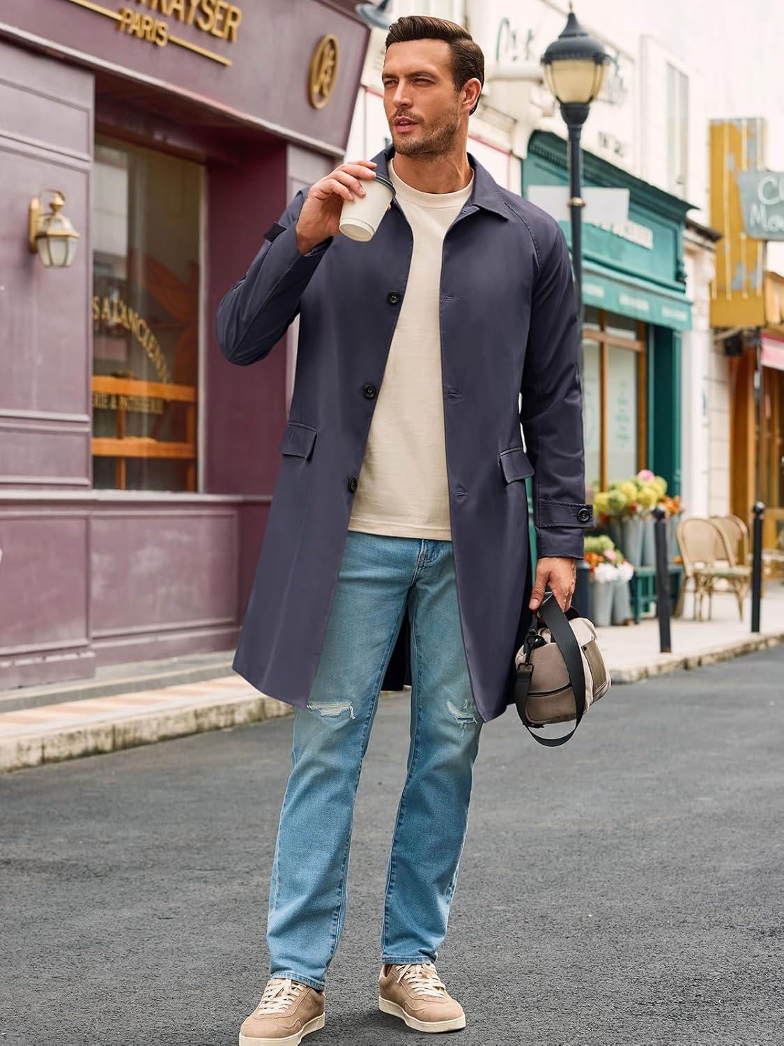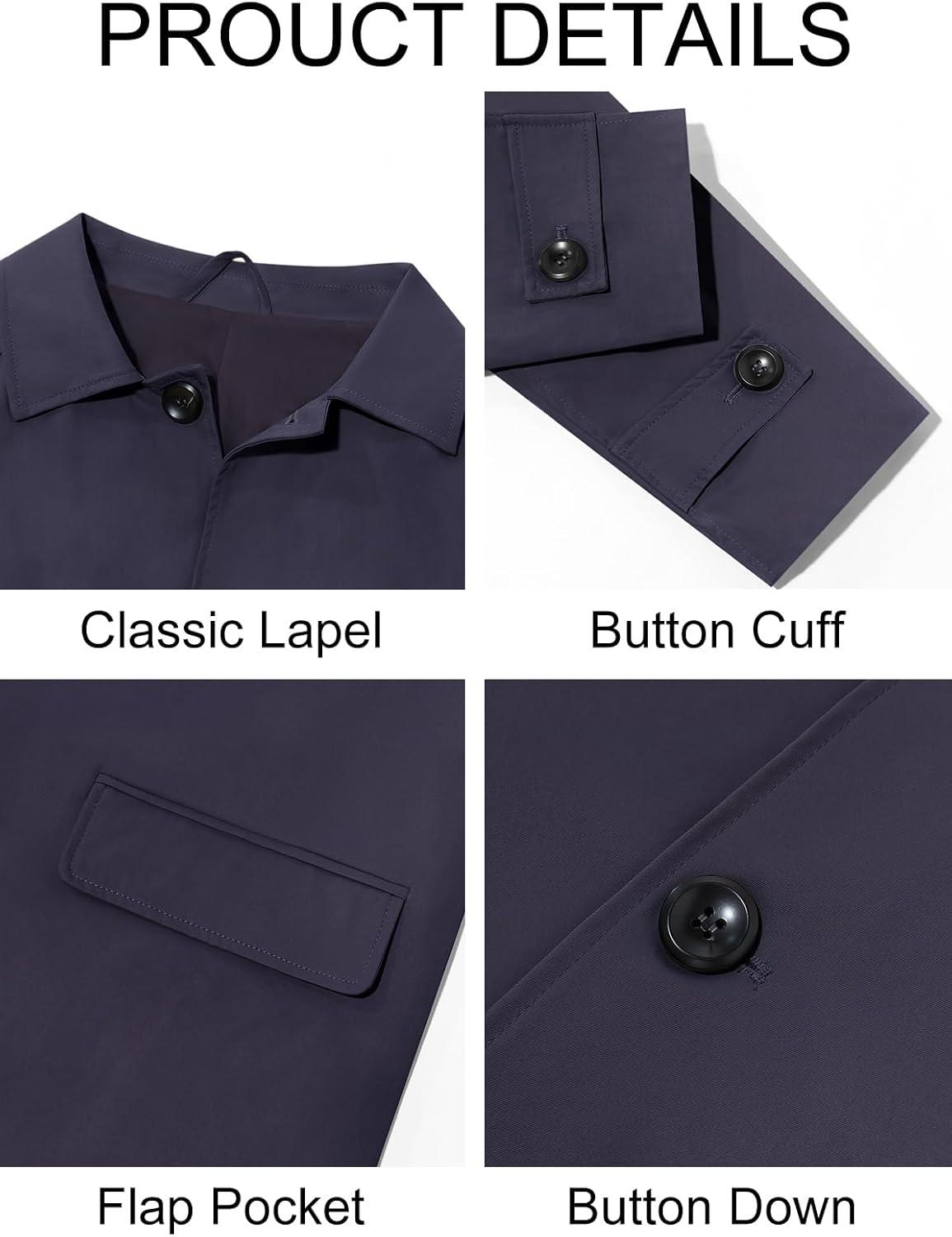 Runcati Mens Trench Coat Slim Fit Single Breasted Long Windbreaker Jacket Classic Lapel Casual Overcoat(Black Grey)