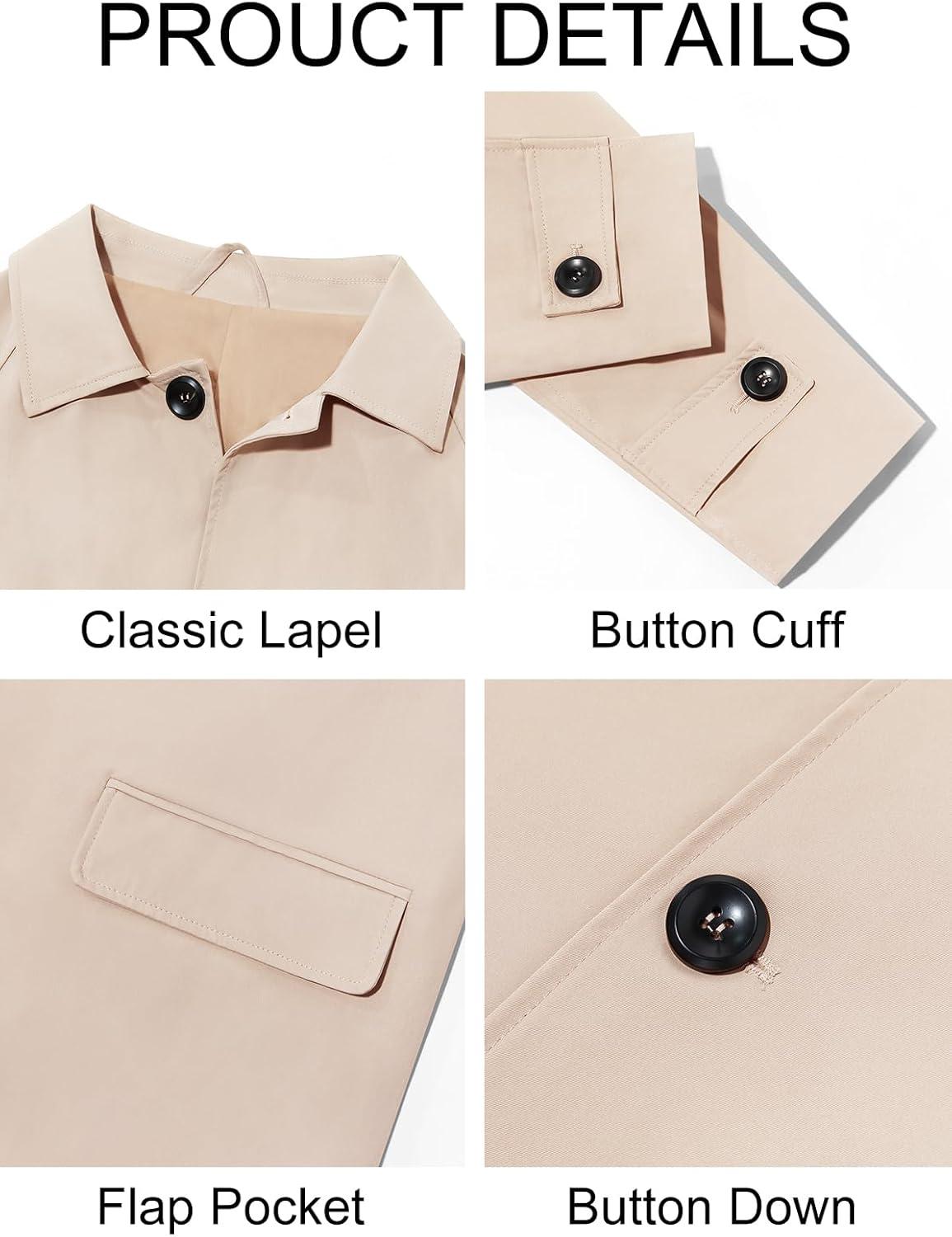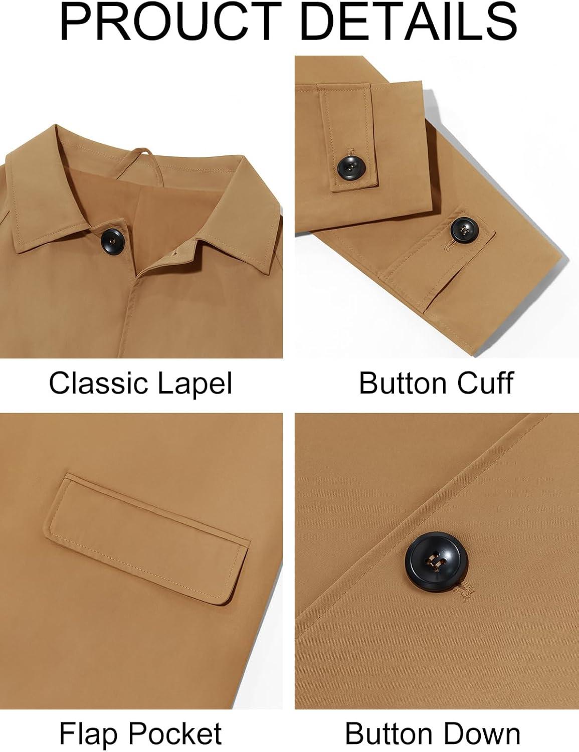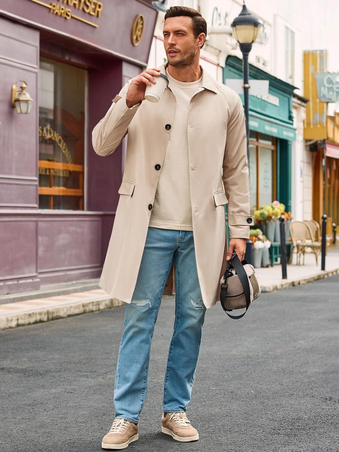 Runcati Mens Trench Coat Slim Fit Single Breasted Long Windbreaker Jacket Classic Lapel Casual Overcoat(Khaki)