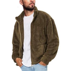 Runcati Mens Fuzzy Sherpa Jacket Cardigan Fleece Long Sleeve Full Zip Open Front Thermal Coat Fall Winter Outwear(Army Green)