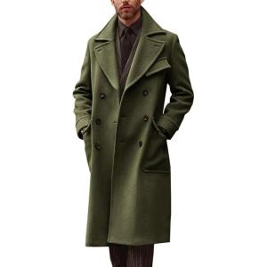 Runcati Mens Trench Coat Notch Lapel Slim Fit Double Breasted Long Pea Coat Winter Warm Overcoat(Army Green)
