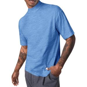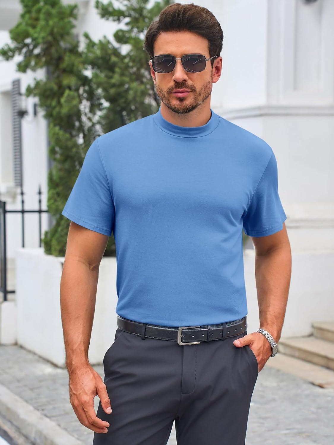 Mens Mock Turtleneck T Shirts Short Sleeve Cotton Basic Undershirt Relaxed Fit Lightweight Solid Pullover Tops(Blue)