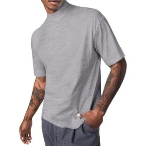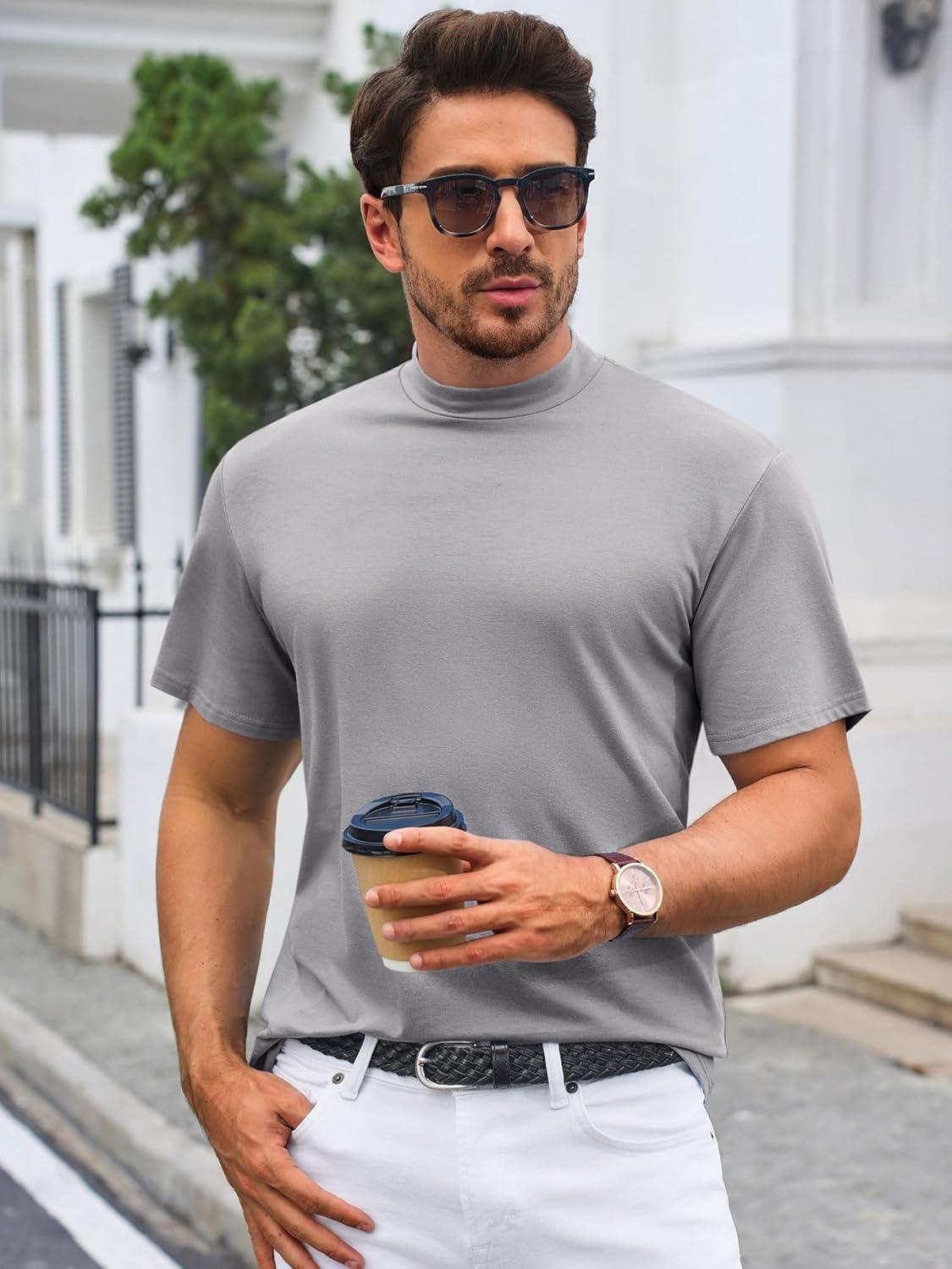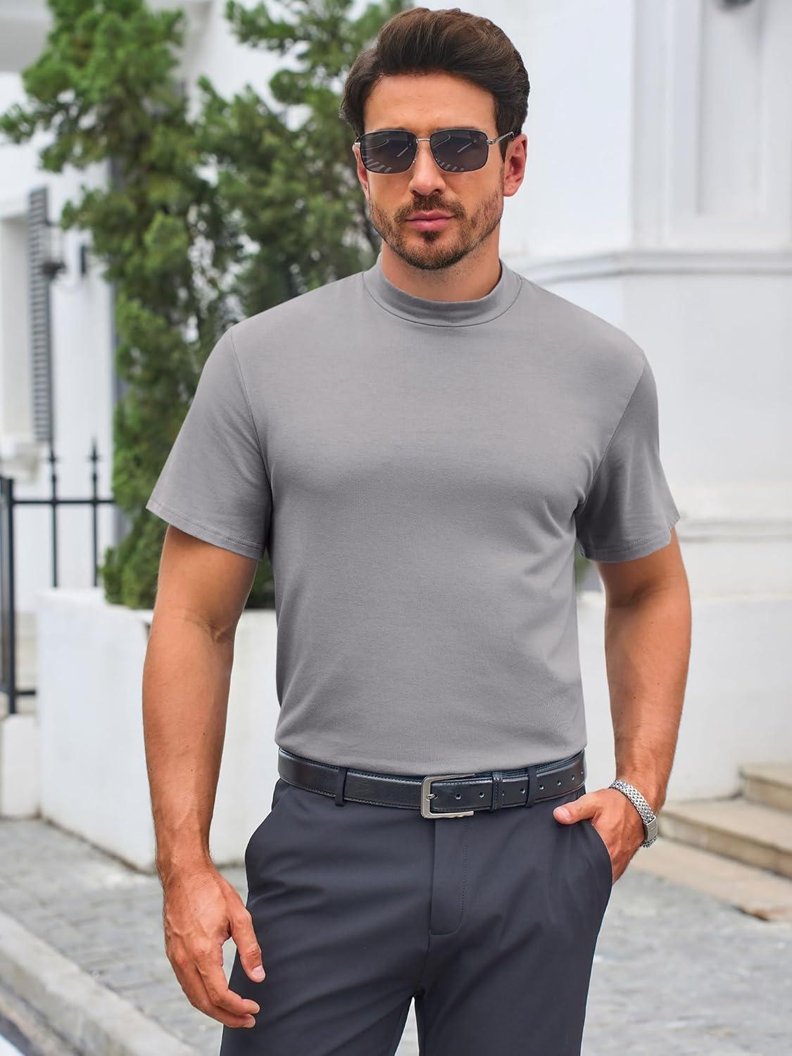 Mens Mock Turtleneck T Shirts Short Sleeve Cotton Basic Undershirt Relaxed Fit Lightweight Solid Pullover Tops(Gray)