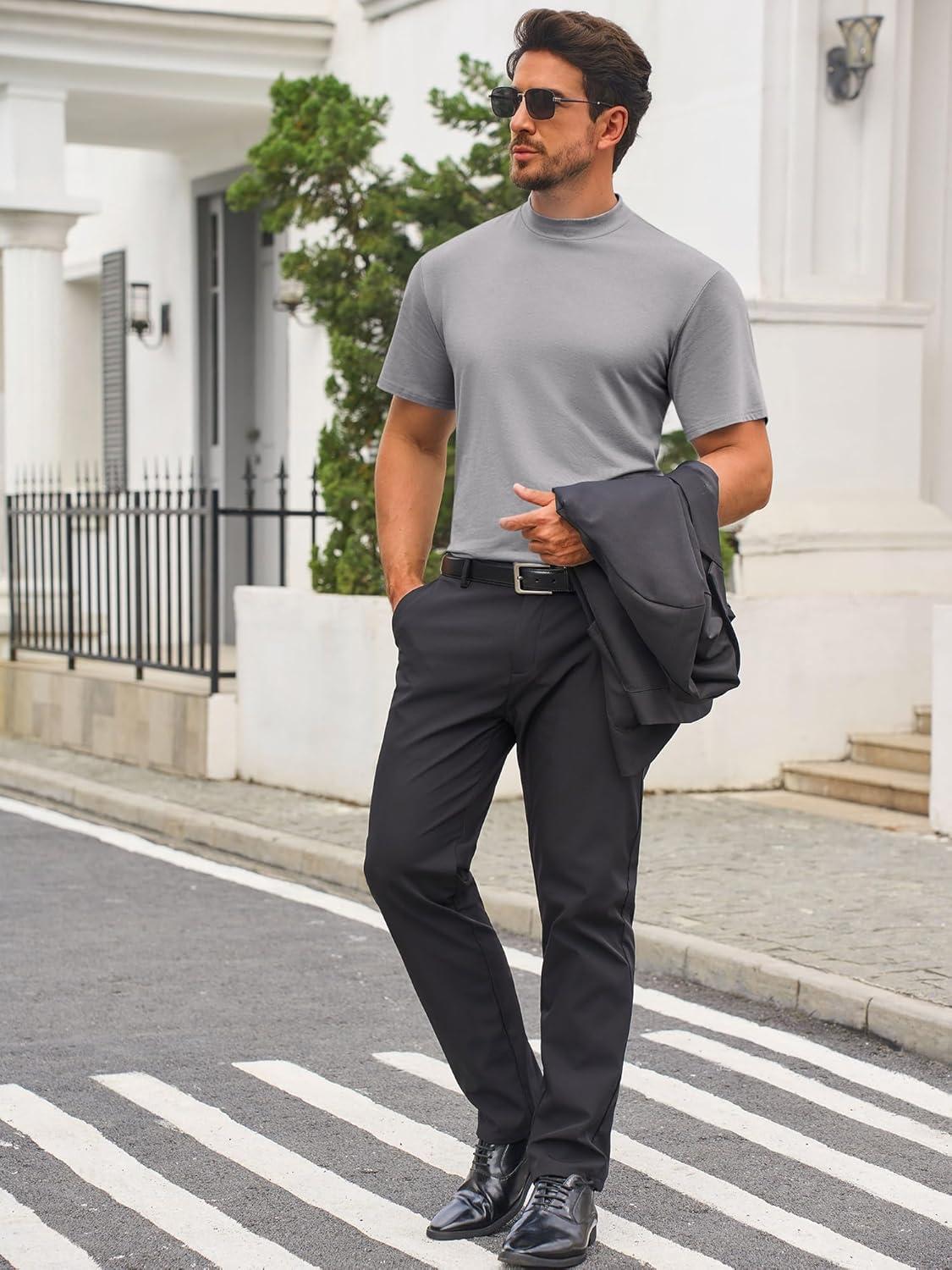 Mens Casual Slim Fit Basic Tops Short Sleeve Shirt Turtleneck T Shirts Rib Knitted Stretch Pullover Sweater(01 Gray)