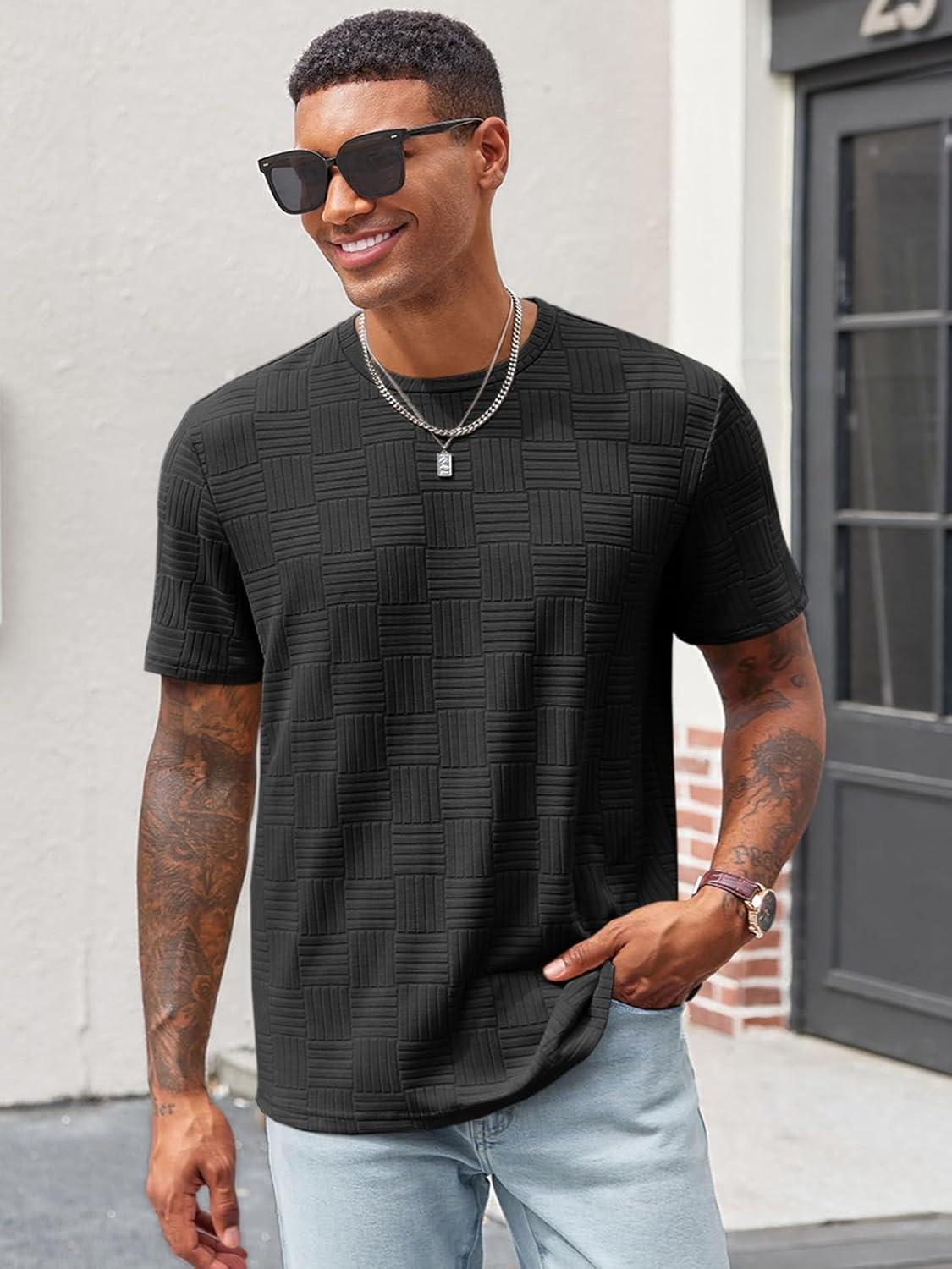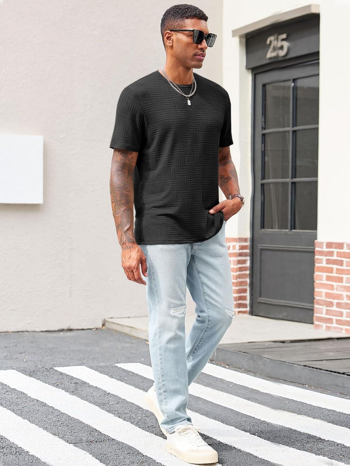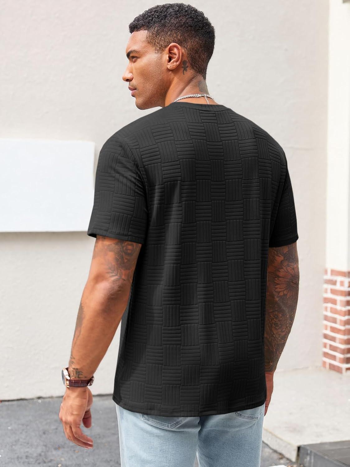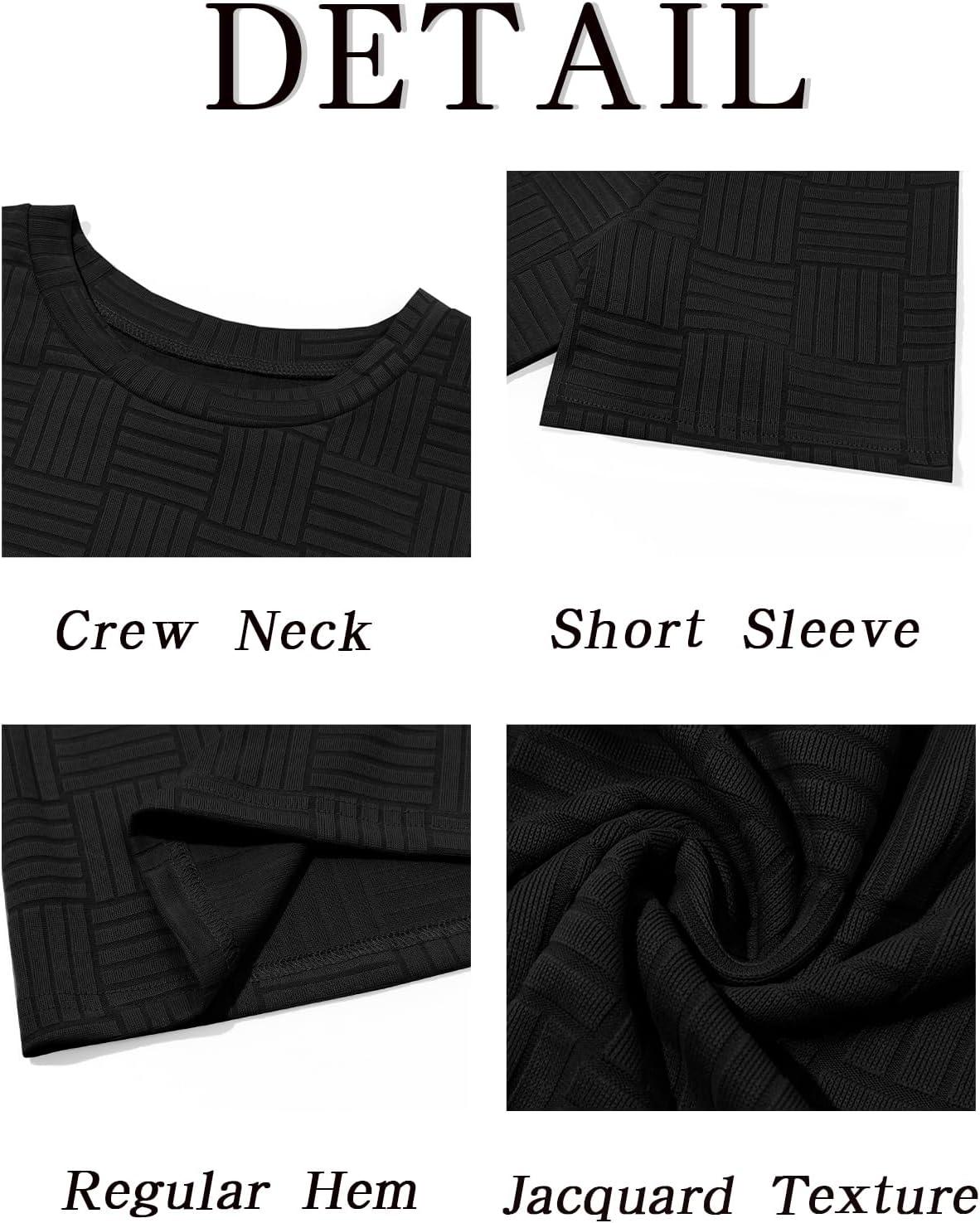 Runcati Men’s Casual T-Shirts Short Sleeve Crew Neck Summer Stretchy Shirt Textured Jacquard Tops(Black)