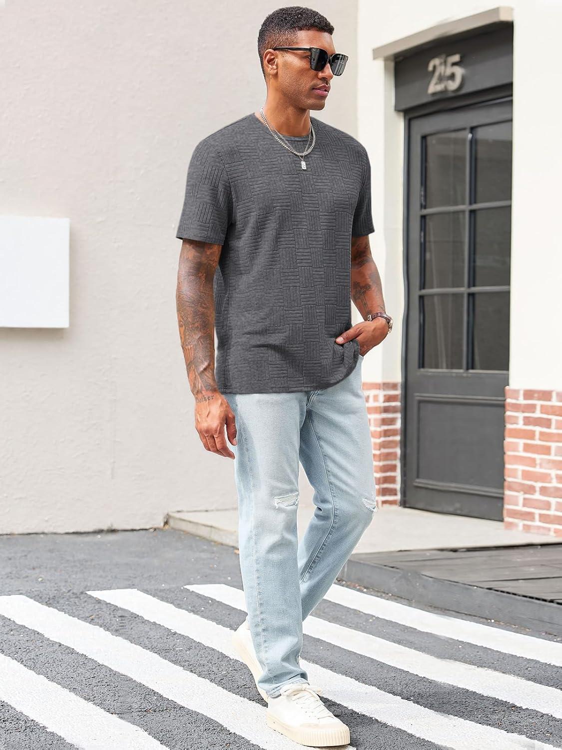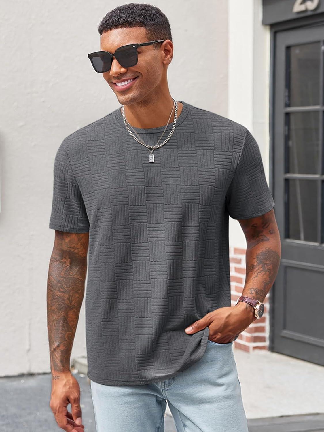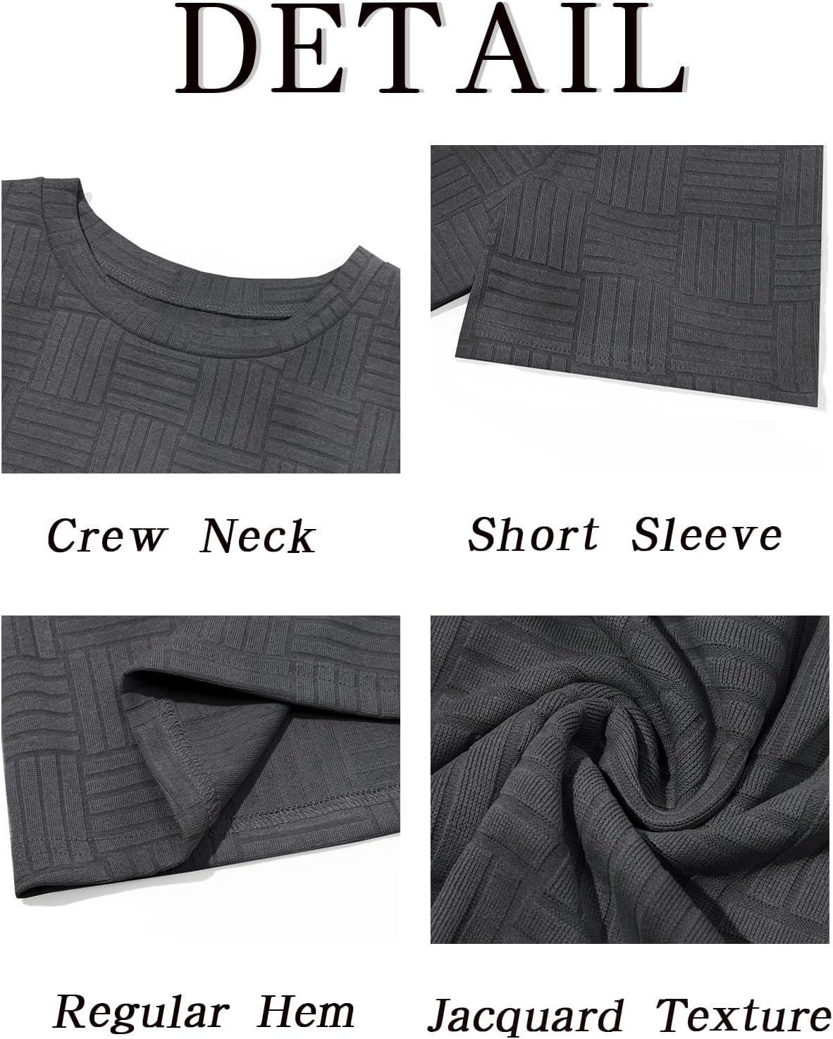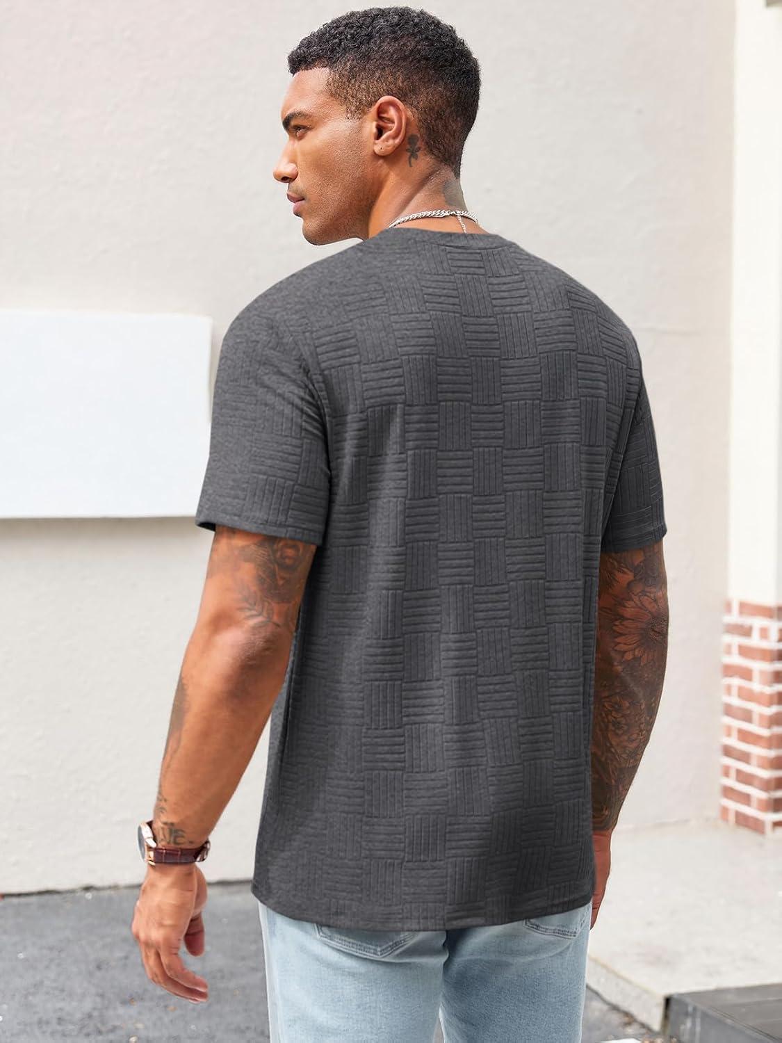 Runcati Men’s Casual T-Shirts Short Sleeve Crew Neck Summer Stretchy Shirt Textured Jacquard Tops(Dark Grey)