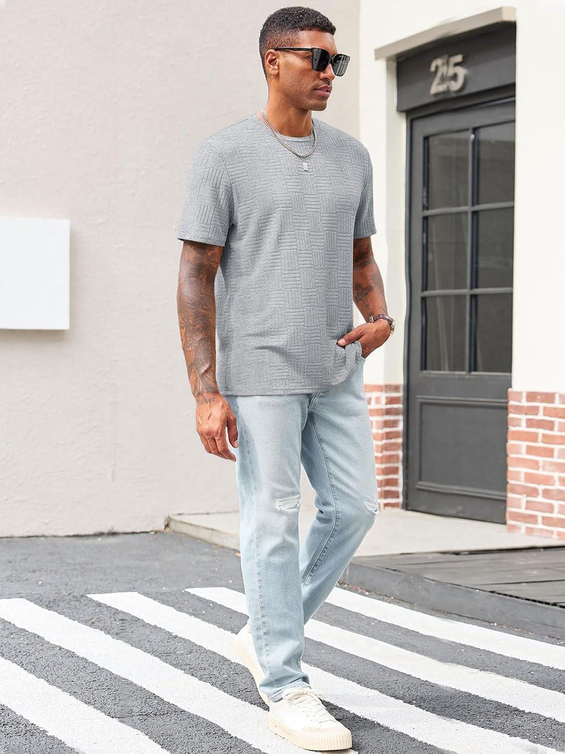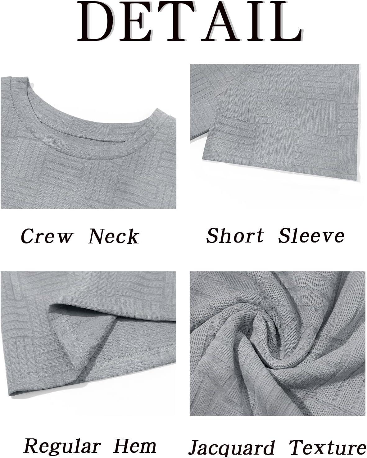 Runcati Men’s Casual T-Shirts Short Sleeve Crew Neck Summer Stretchy Shirt Textured Jacquard Tops(Grey)
