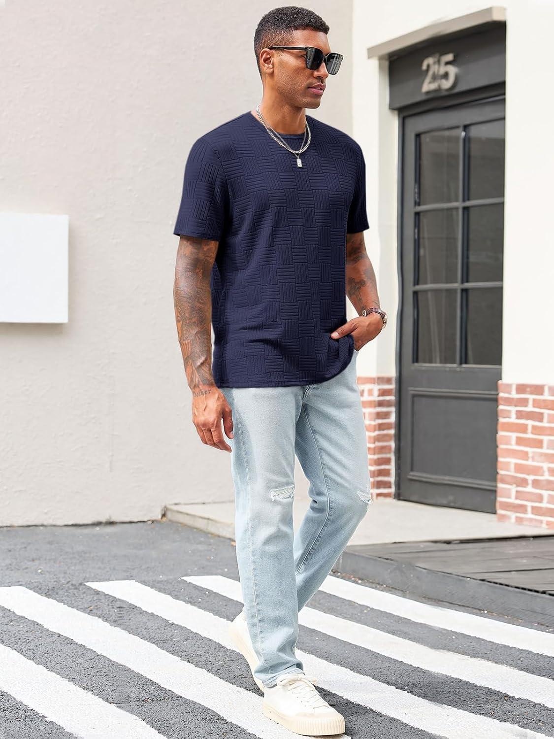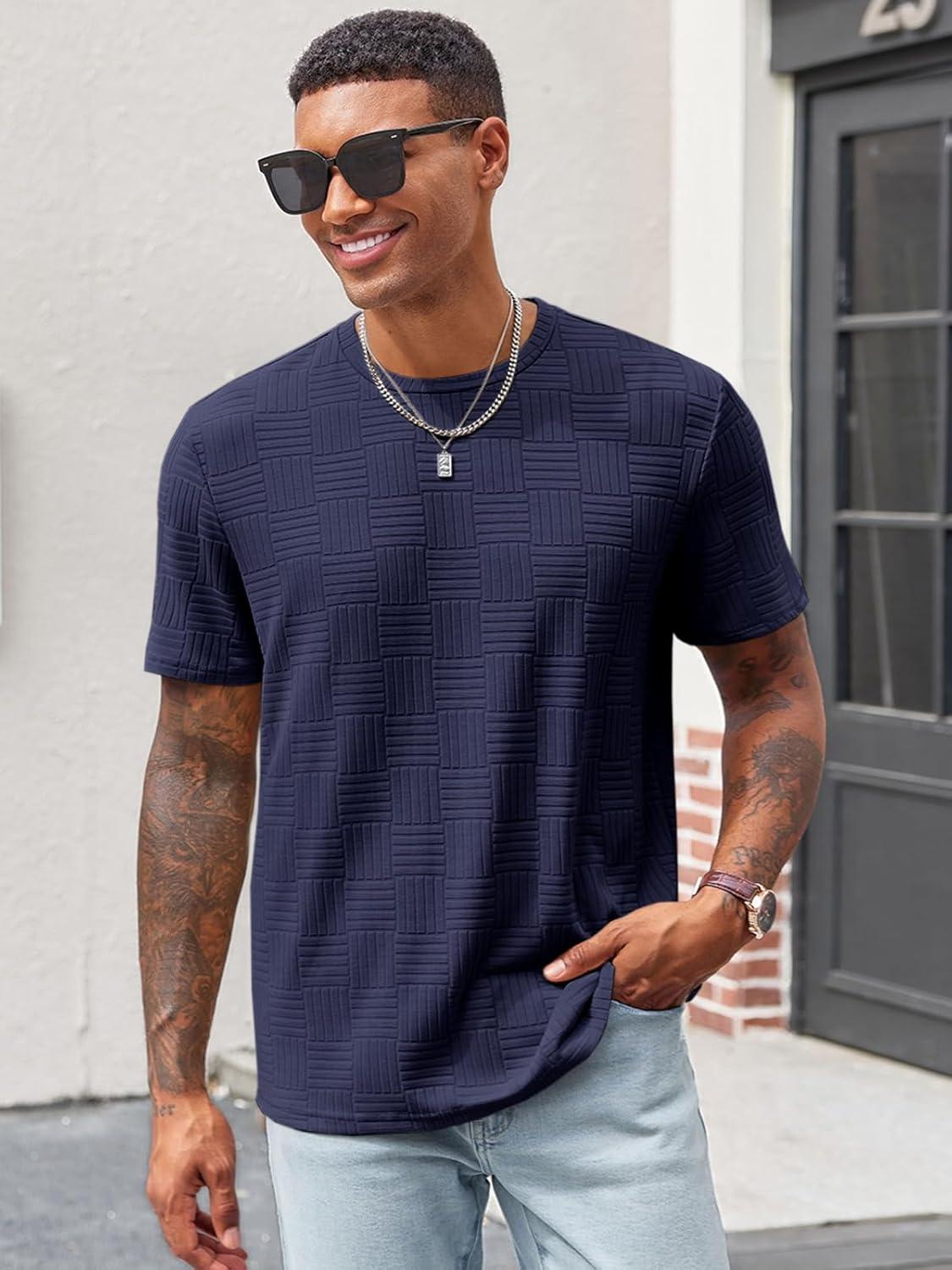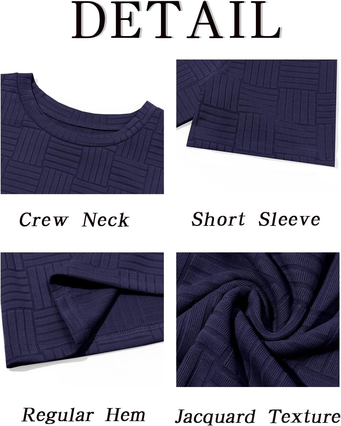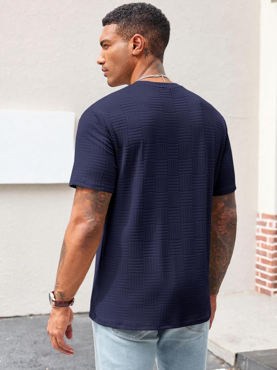 Runcati Men’s Casual T-Shirts Short Sleeve Crew Neck Summer Stretchy Shirt Textured Jacquard Tops(Navy)