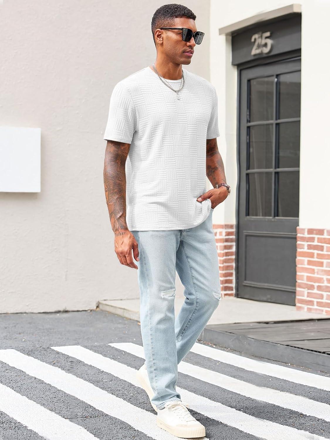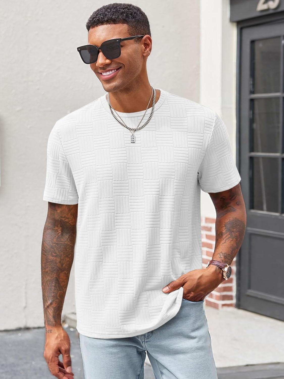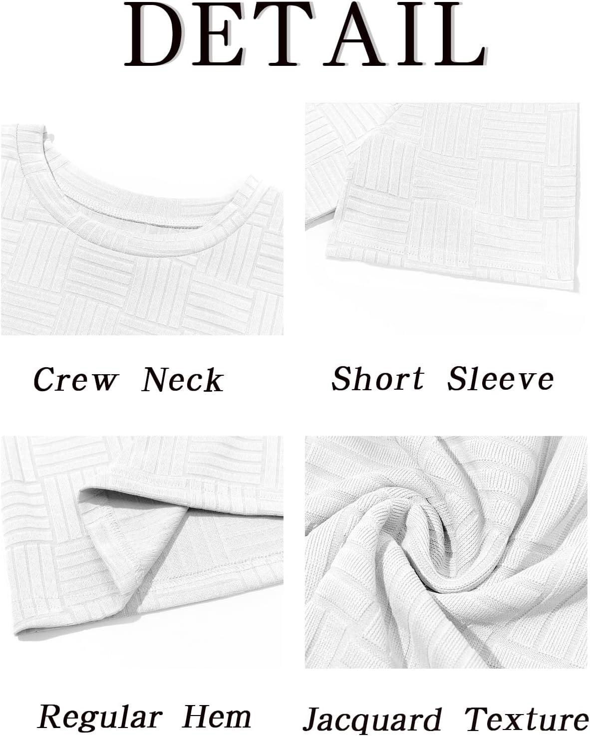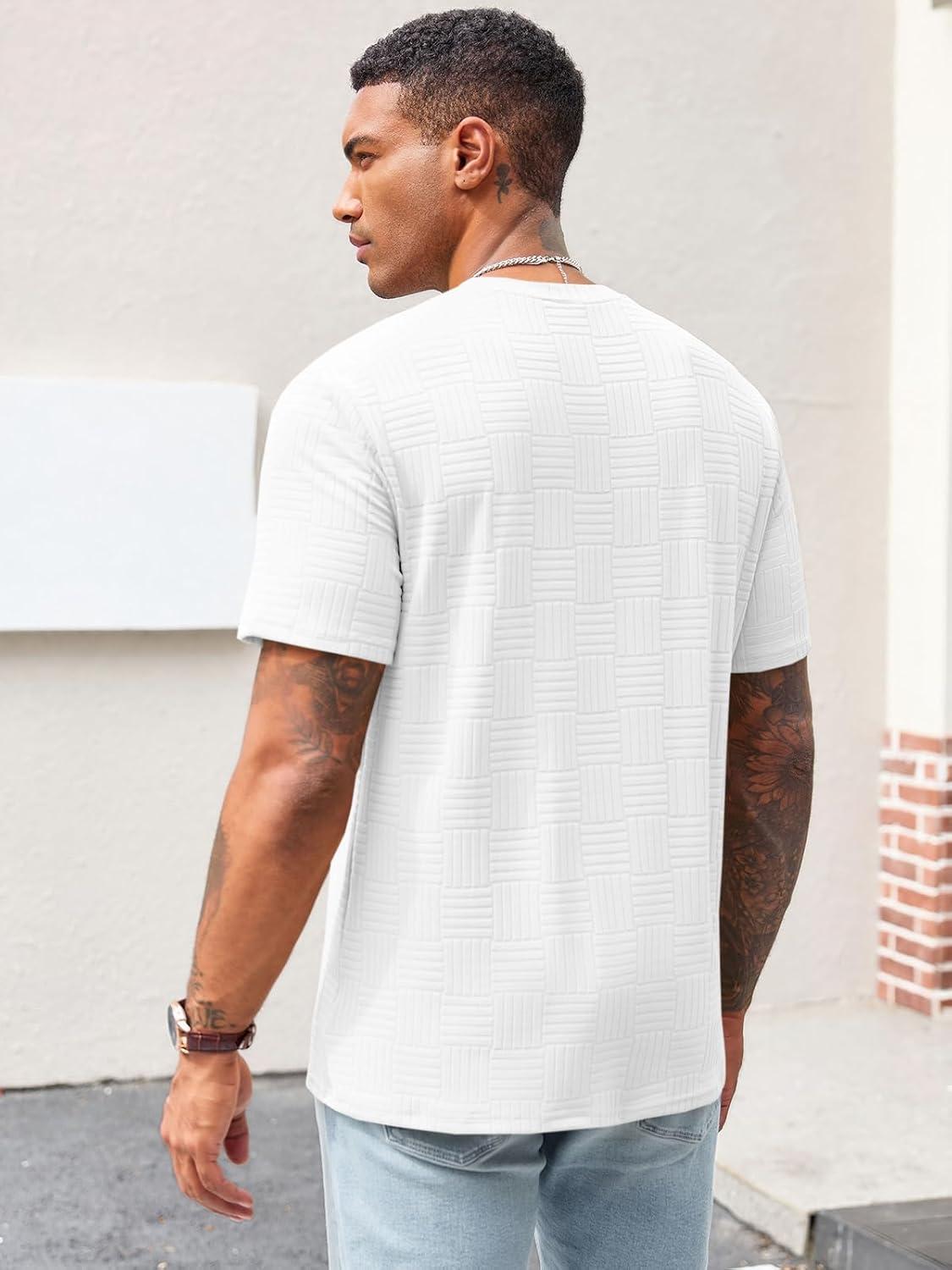 Runcati Men’s Casual T-Shirts Short Sleeve Crew Neck Summer Stretchy Shirt Textured Jacquard Tops(White)