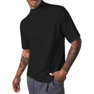 Mens Mock Turtleneck T Shirts Short Sleeve Cotton Basic Undershirt Relaxed Fit Lightweight Solid Pullover Tops(Black)