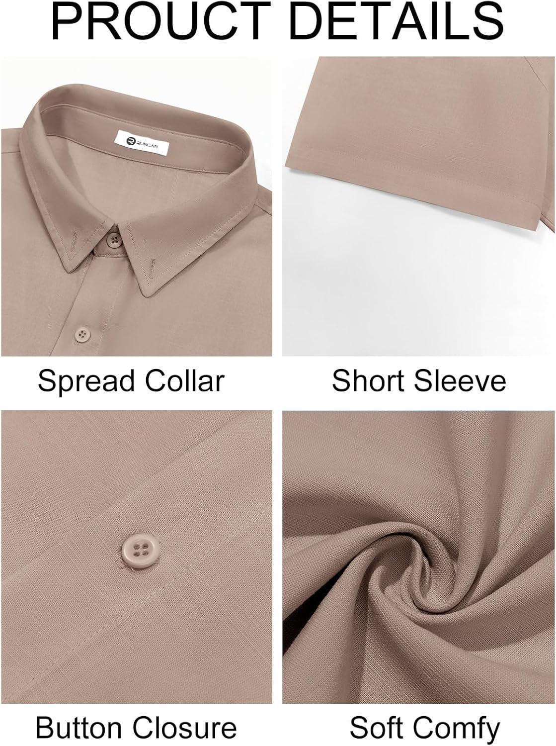 Runcati Mens Button Down Linen Shirts Short Sleeve Casual Collared Summer Beach Untucked Tops(Khaki)