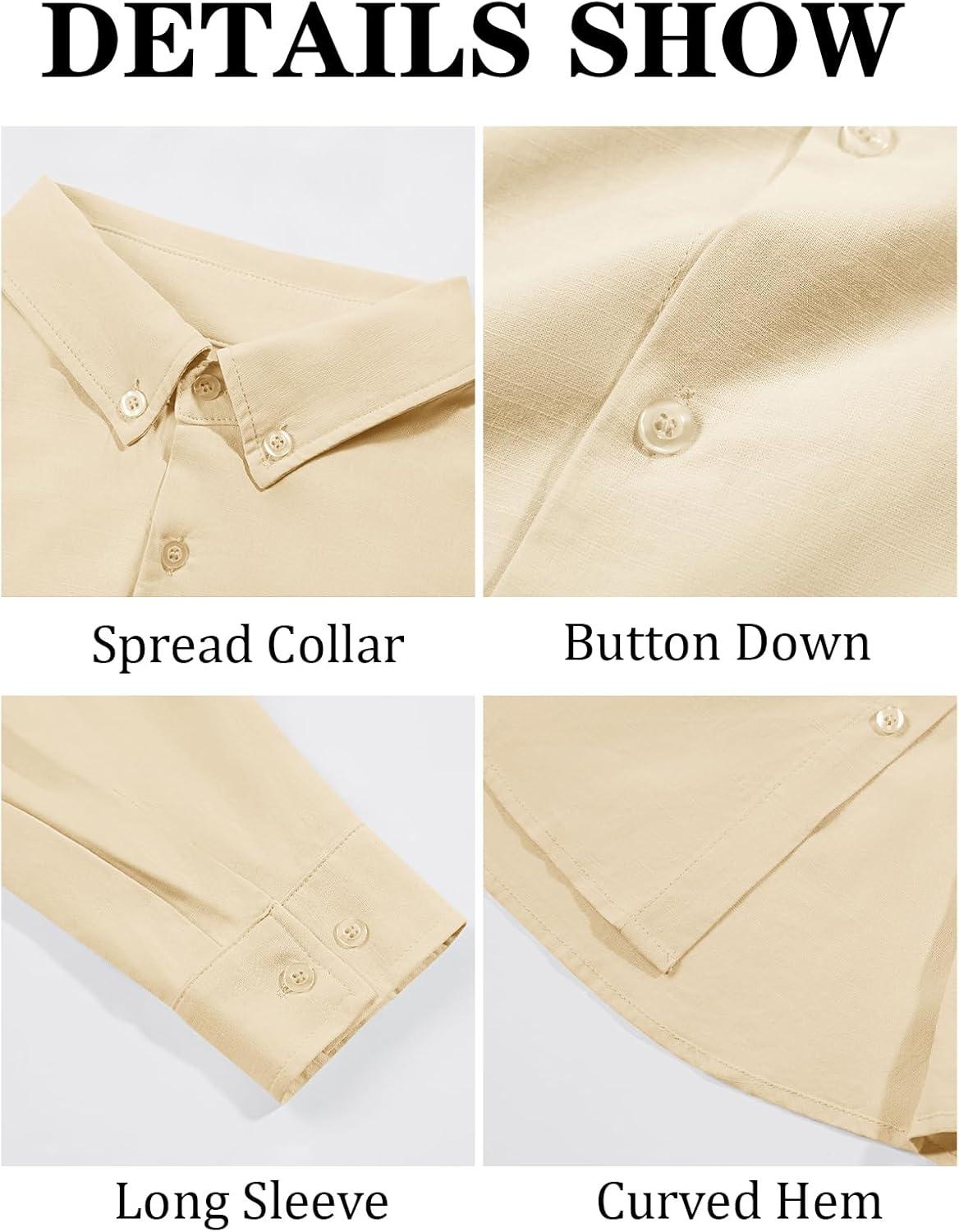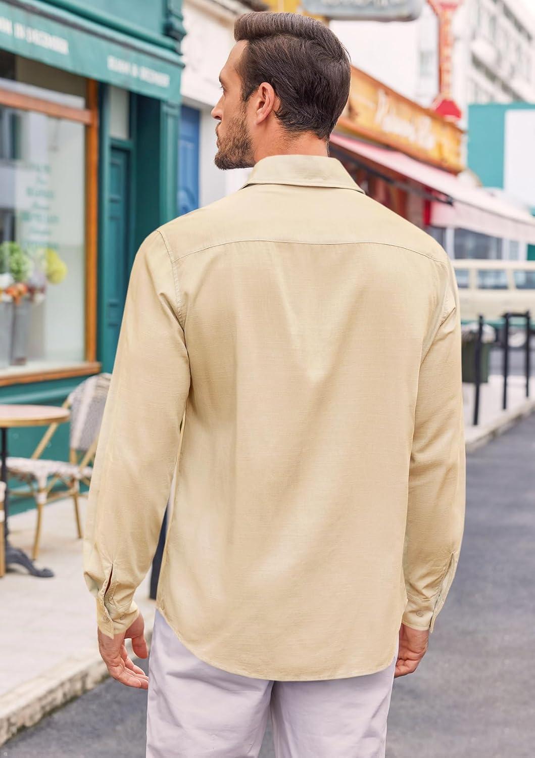Runcati Mens Button Down Shirt Cotton Linen Casual Long Sleeve Shirts Collared Hippie Beach Tops(Beige)