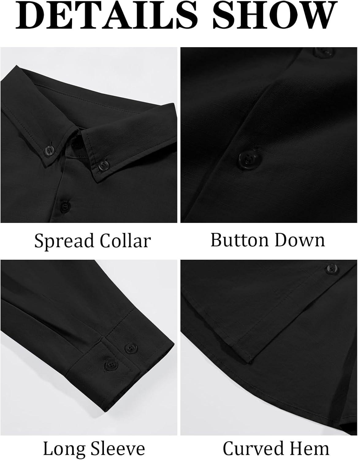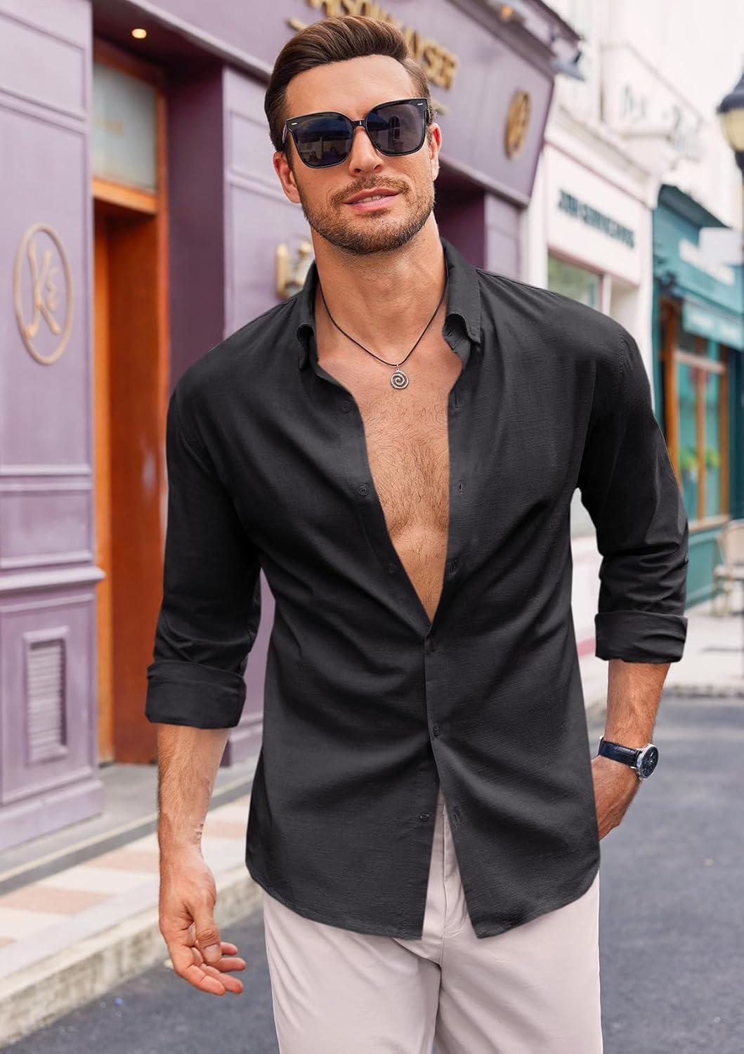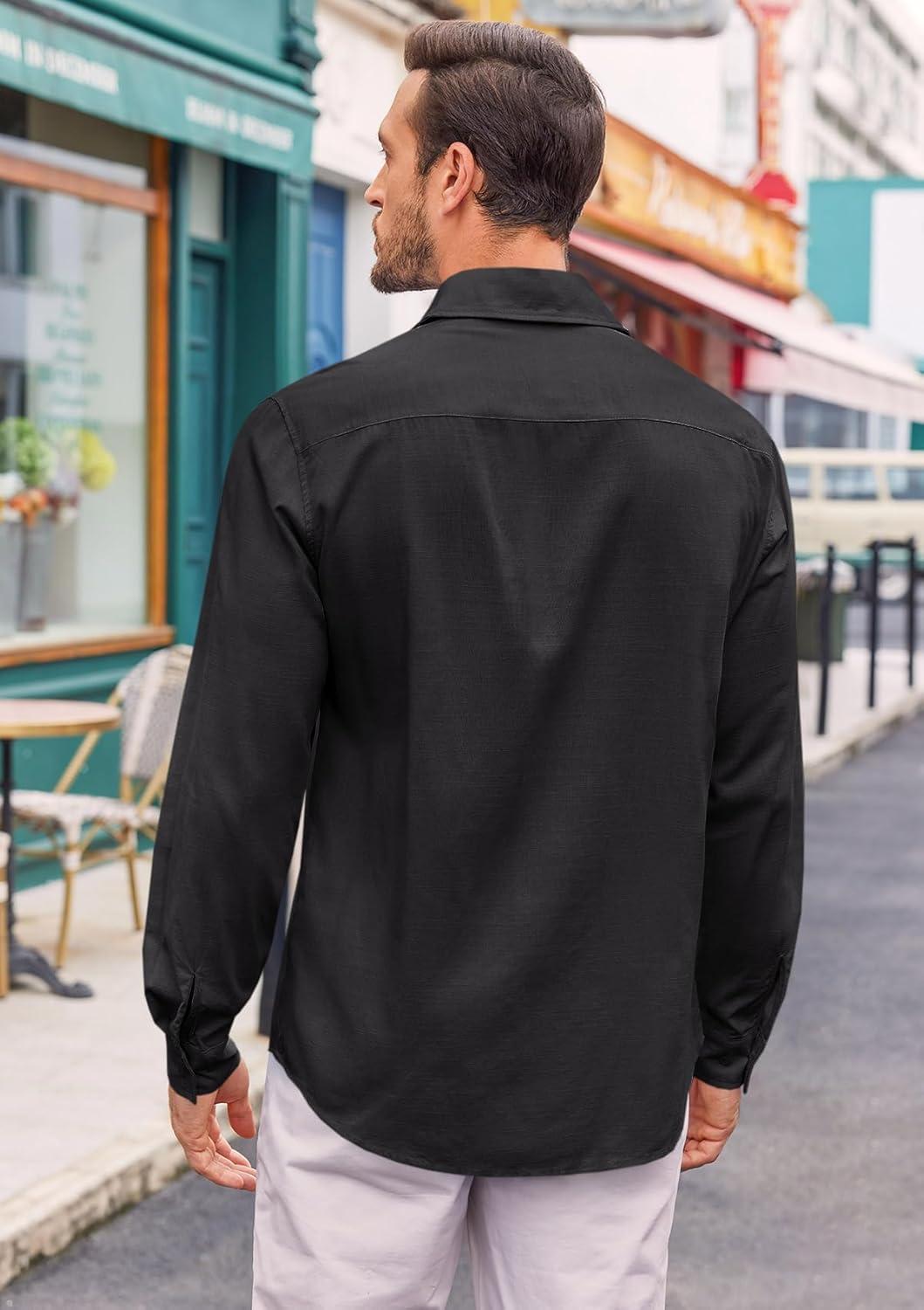 Runcati Mens Button Down Shirt Cotton Linen Casual Long Sleeve Shirts Collared Hippie Beach Tops(Black)