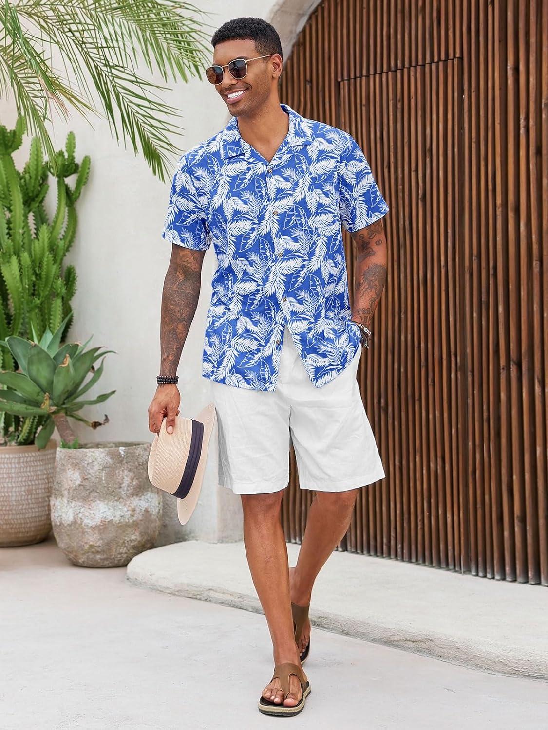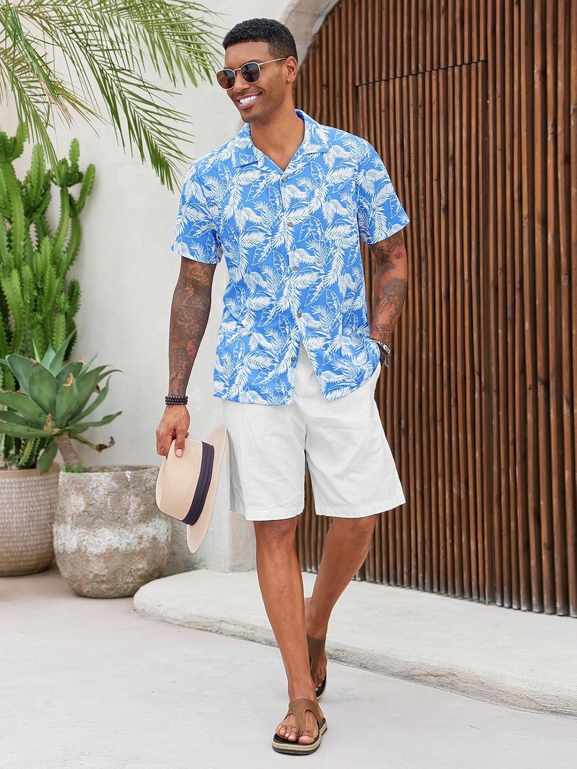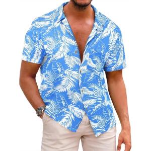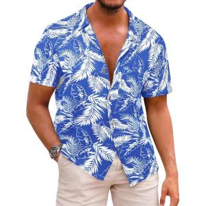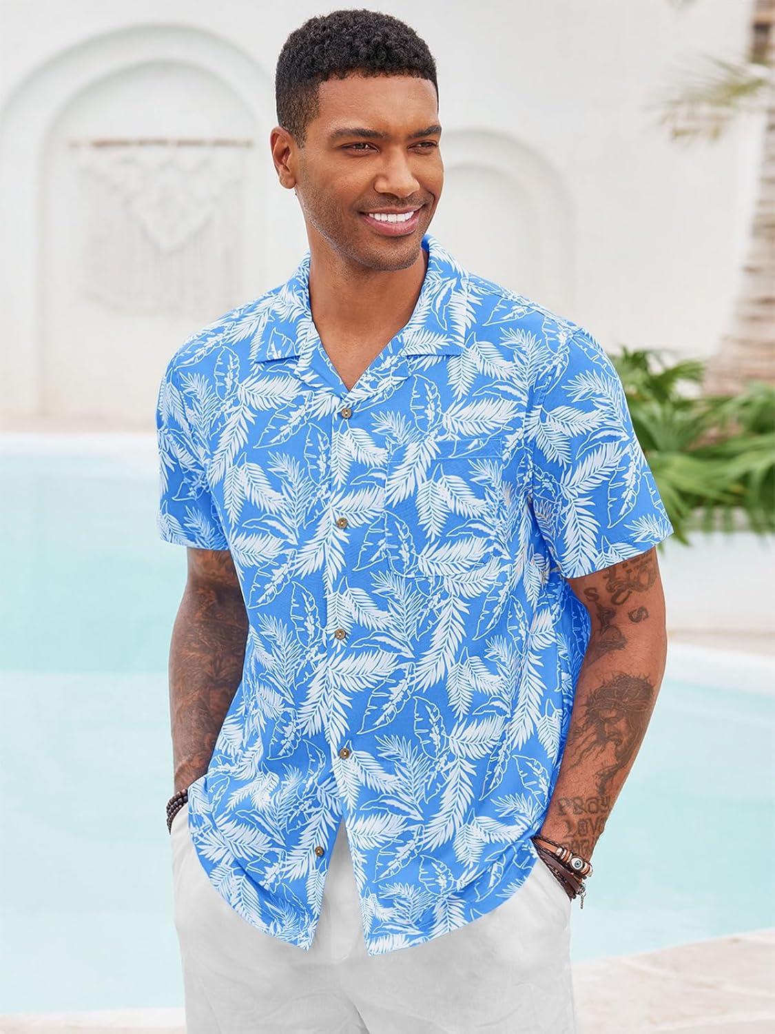 Runcati Men’s Hawaiian Shirts Button Down Short Sleeve Cuban Collar Shirt Floral Tropical Summer Beach Tops(Blue)