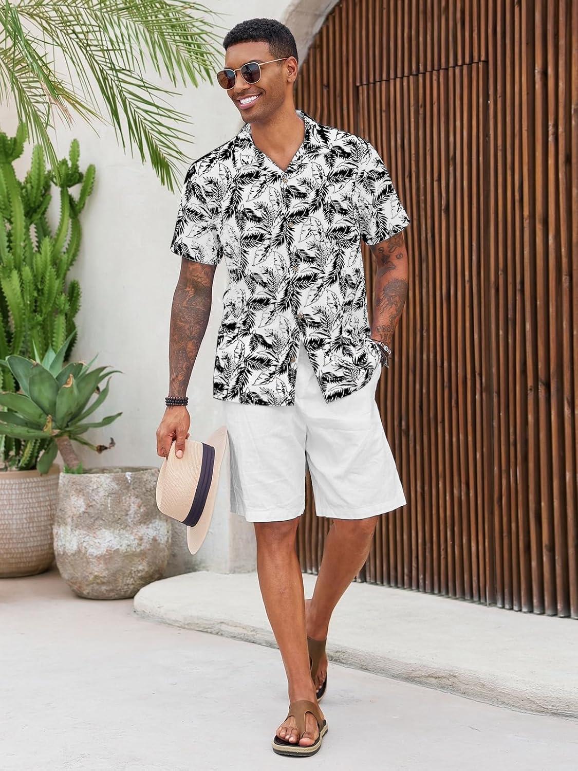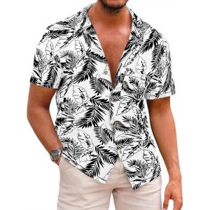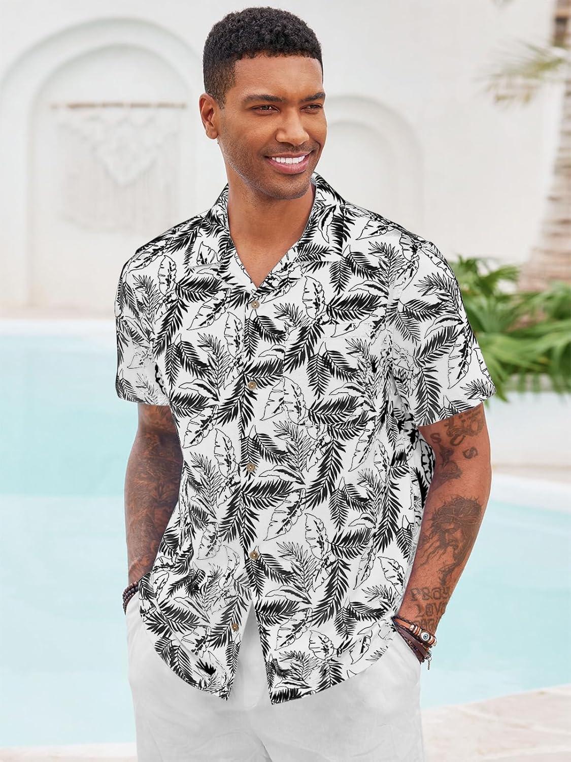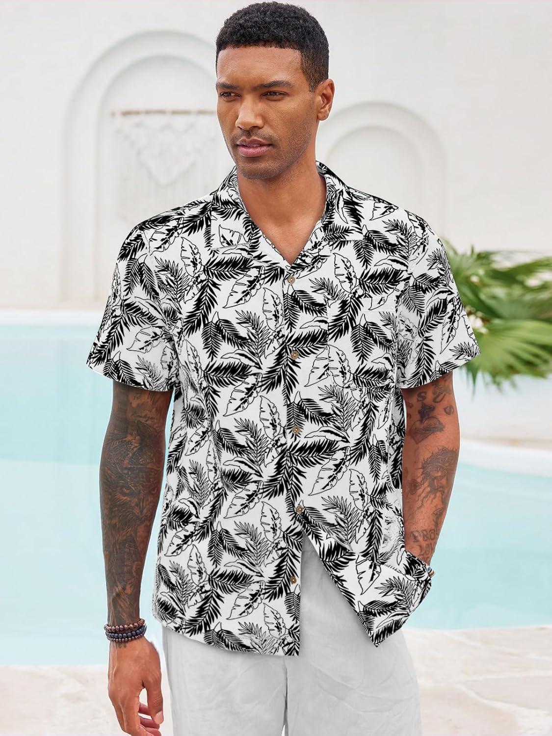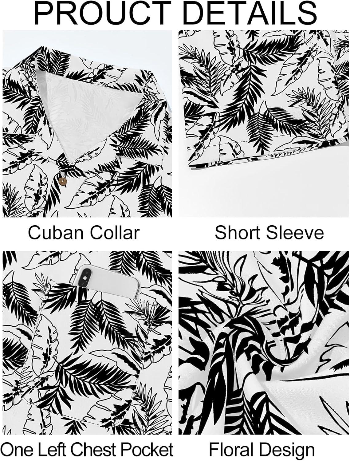 Runcati Men’s Hawaiian Shirts Button Down Short Sleeve Cuban Collar Shirt Floral Tropical Summer Beach Tops(White)