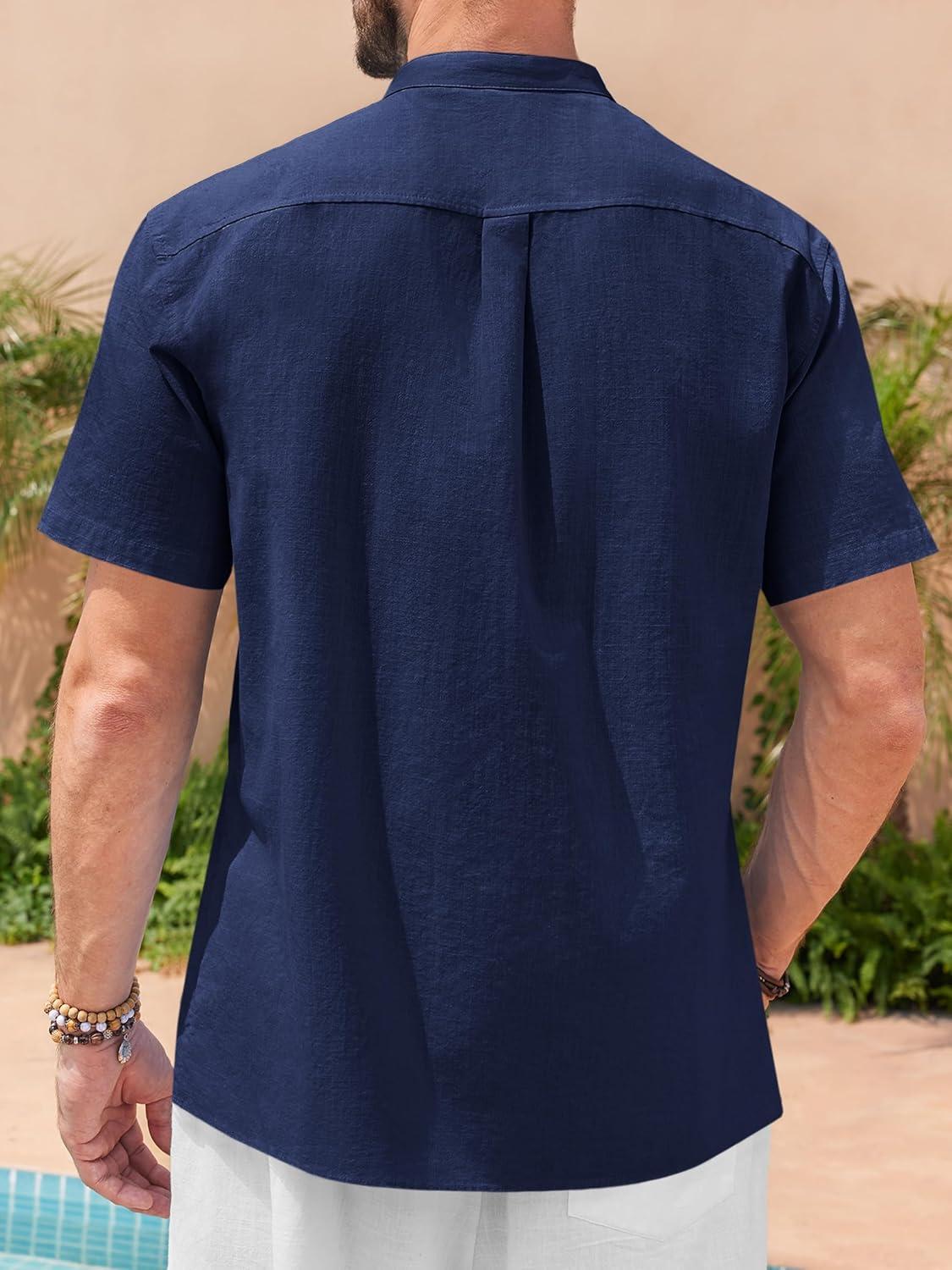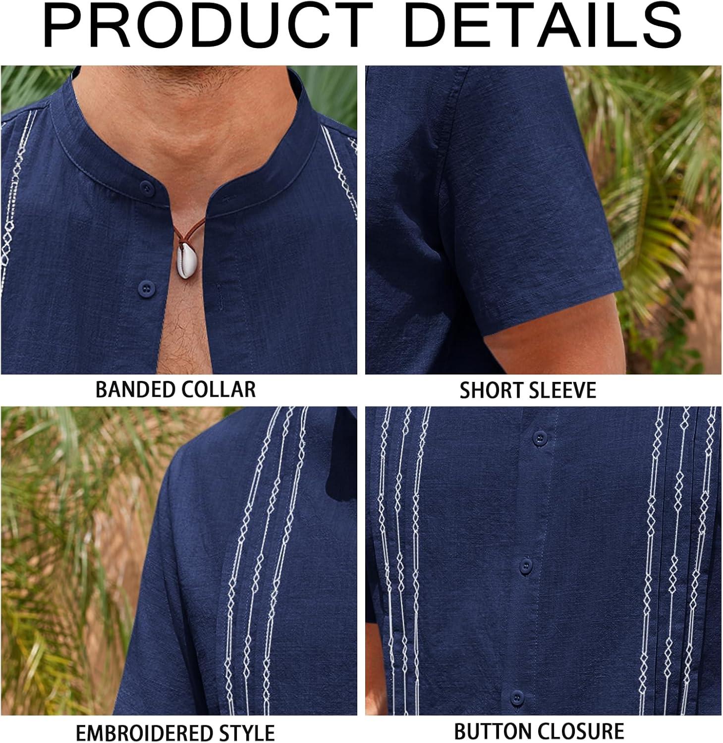 • Runcati Mens Short Sleeve Guayabera Shirts Linen Cotton Button Down Mexican Embroidered Cuban Wedding Shirt Summer Beach Tops(05 Navy)