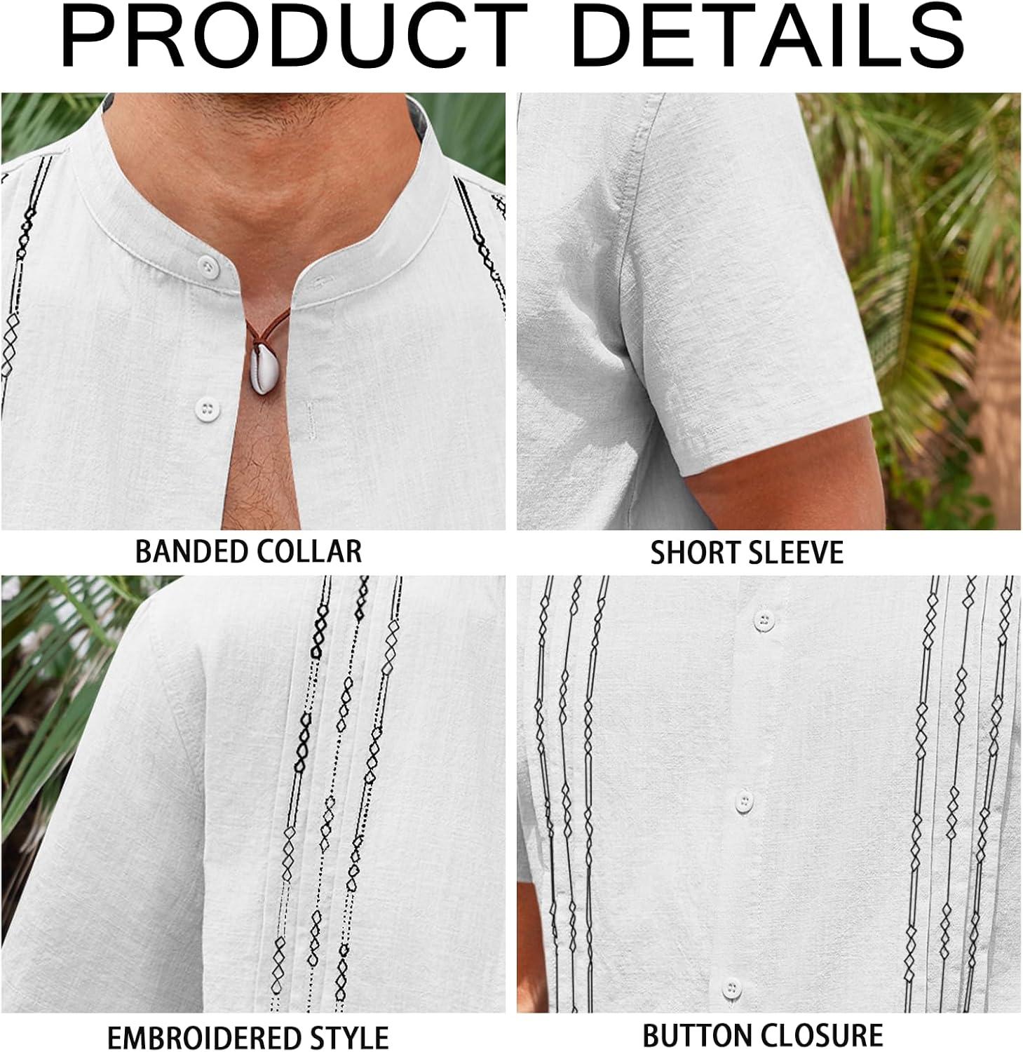 • Runcati Mens Short Sleeve Guayabera Shirts Linen Cotton Button Down Mexican Embroidered Cuban Wedding Shirt Summer Beach Tops(05 White)