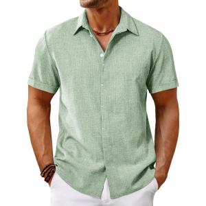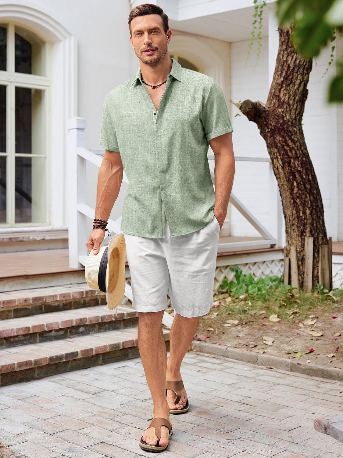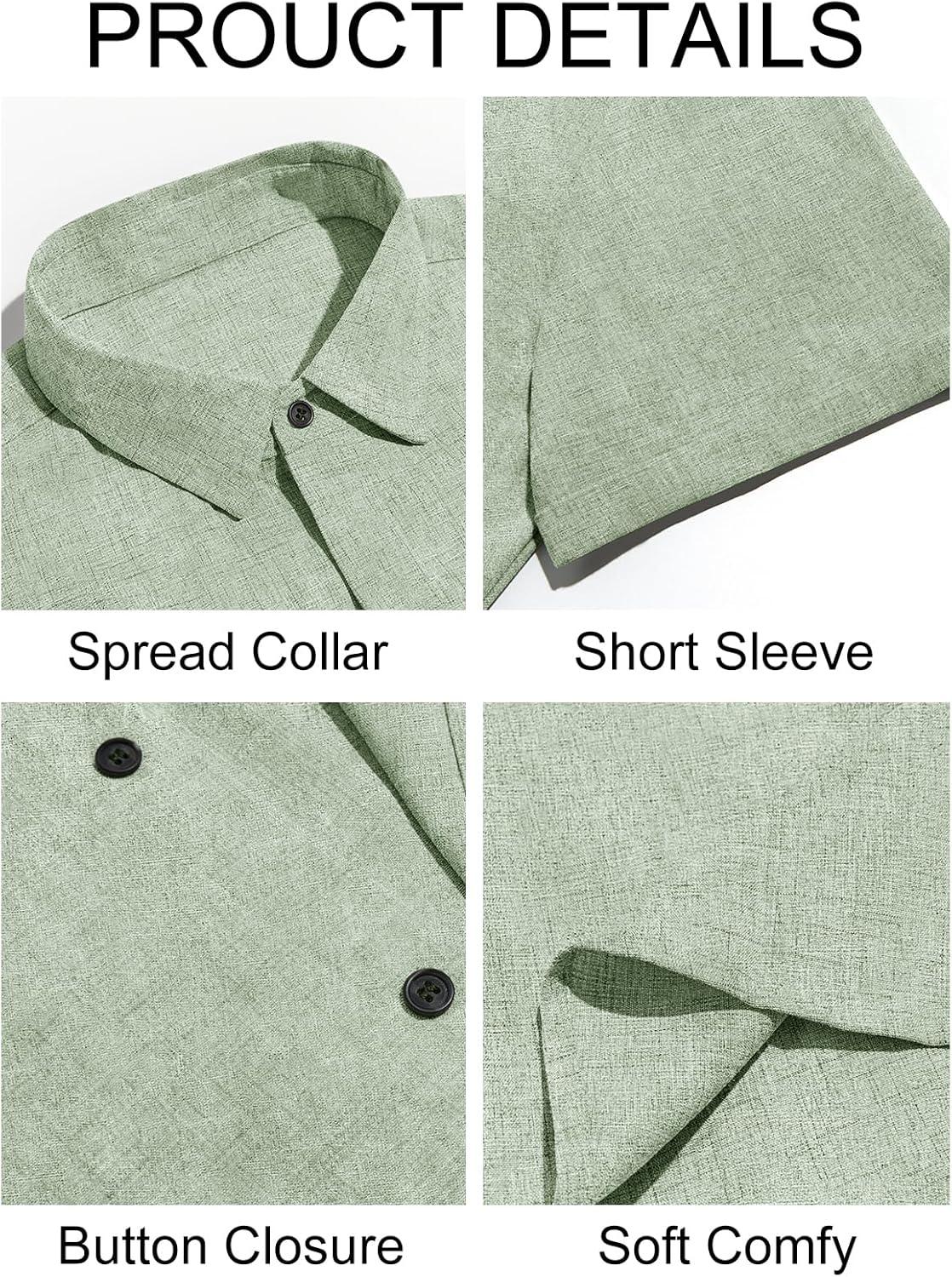 • Runcati Mens Short Sleeve Linen Shirts Button Down Casual Texture Summer Beach Wedding Tops(Olive Green)