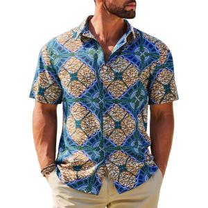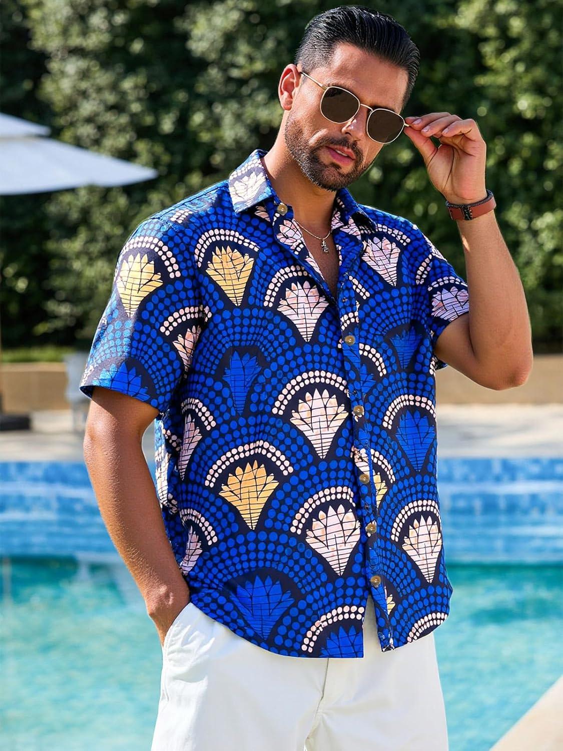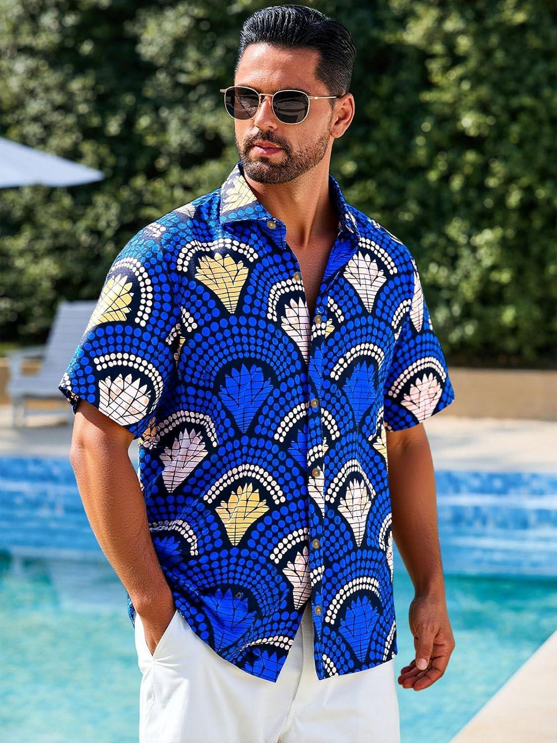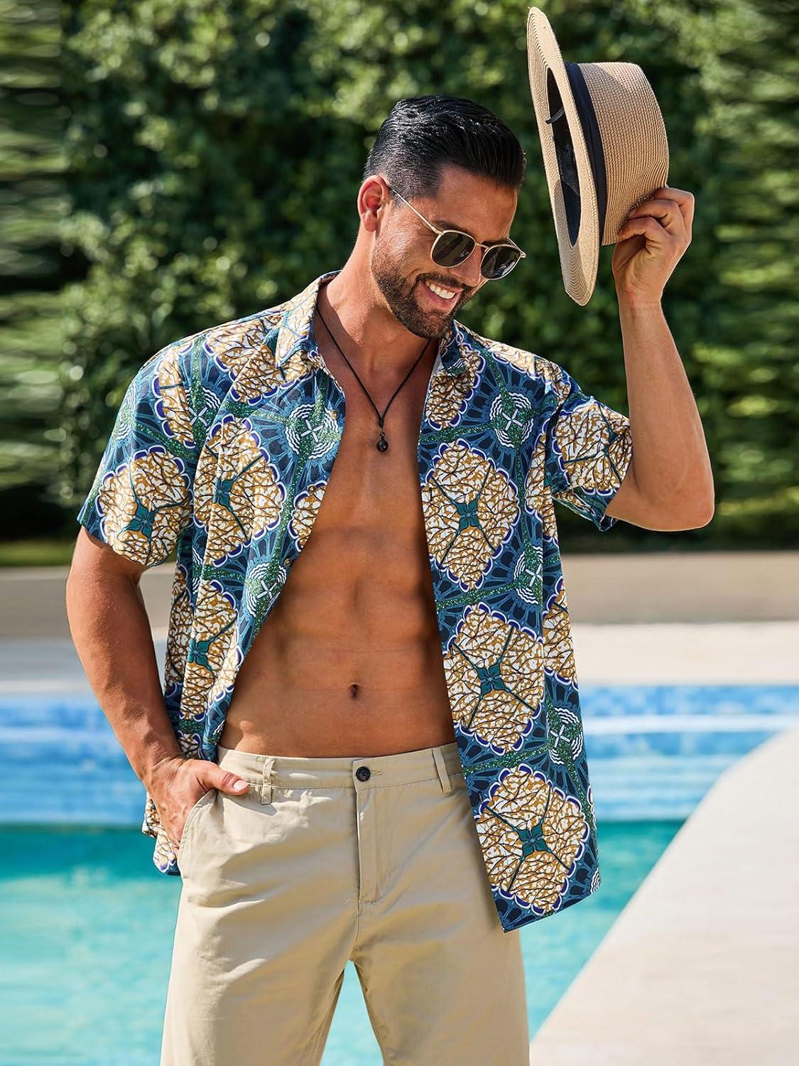• Runcati Mens Short Sleeve Shirts Button Down African Traditional Pattern Dashiki Shirt Casual Vintage Floral Hippie Tops(Blue)