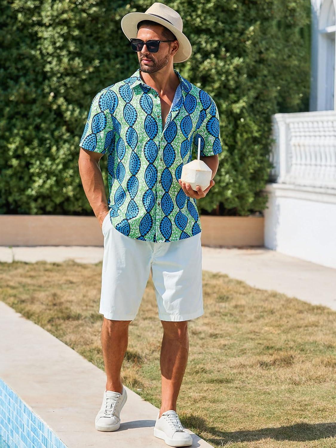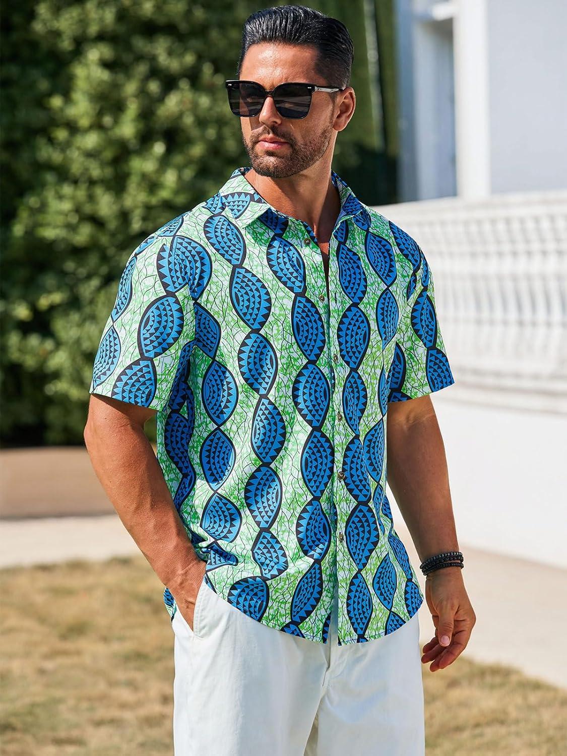 • Runcati Mens Short Sleeve Shirts Button Down African Traditional Pattern Dashiki Shirt Casual Vintage Floral Hippie Tops(Dark Green)