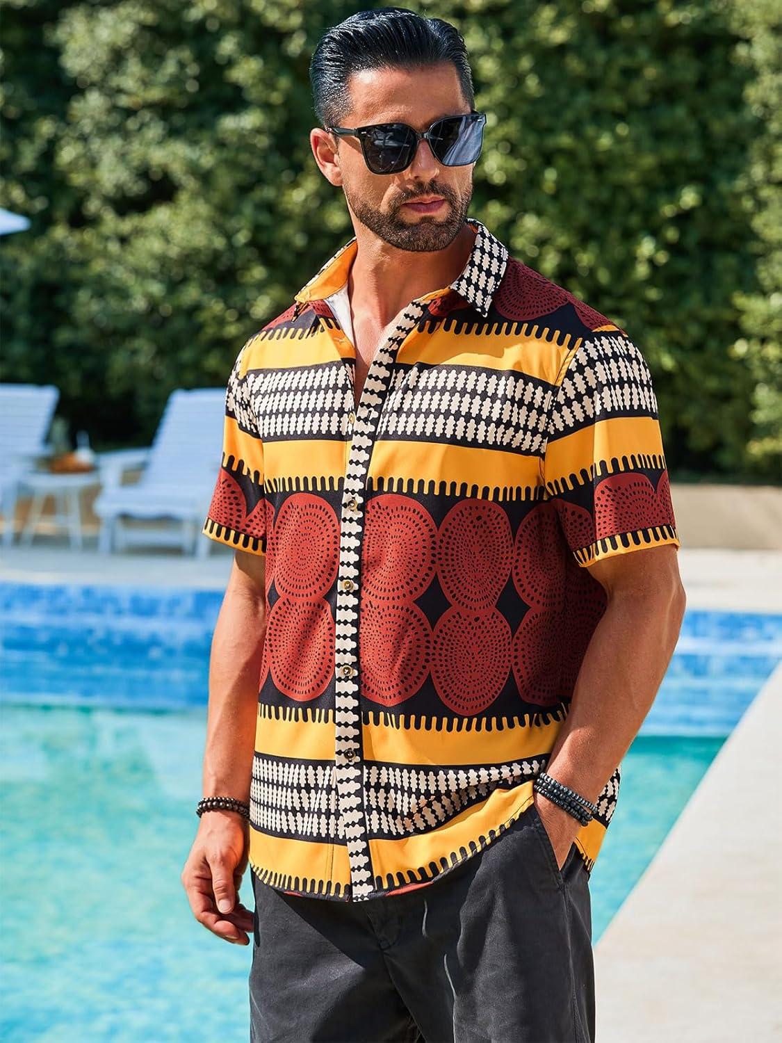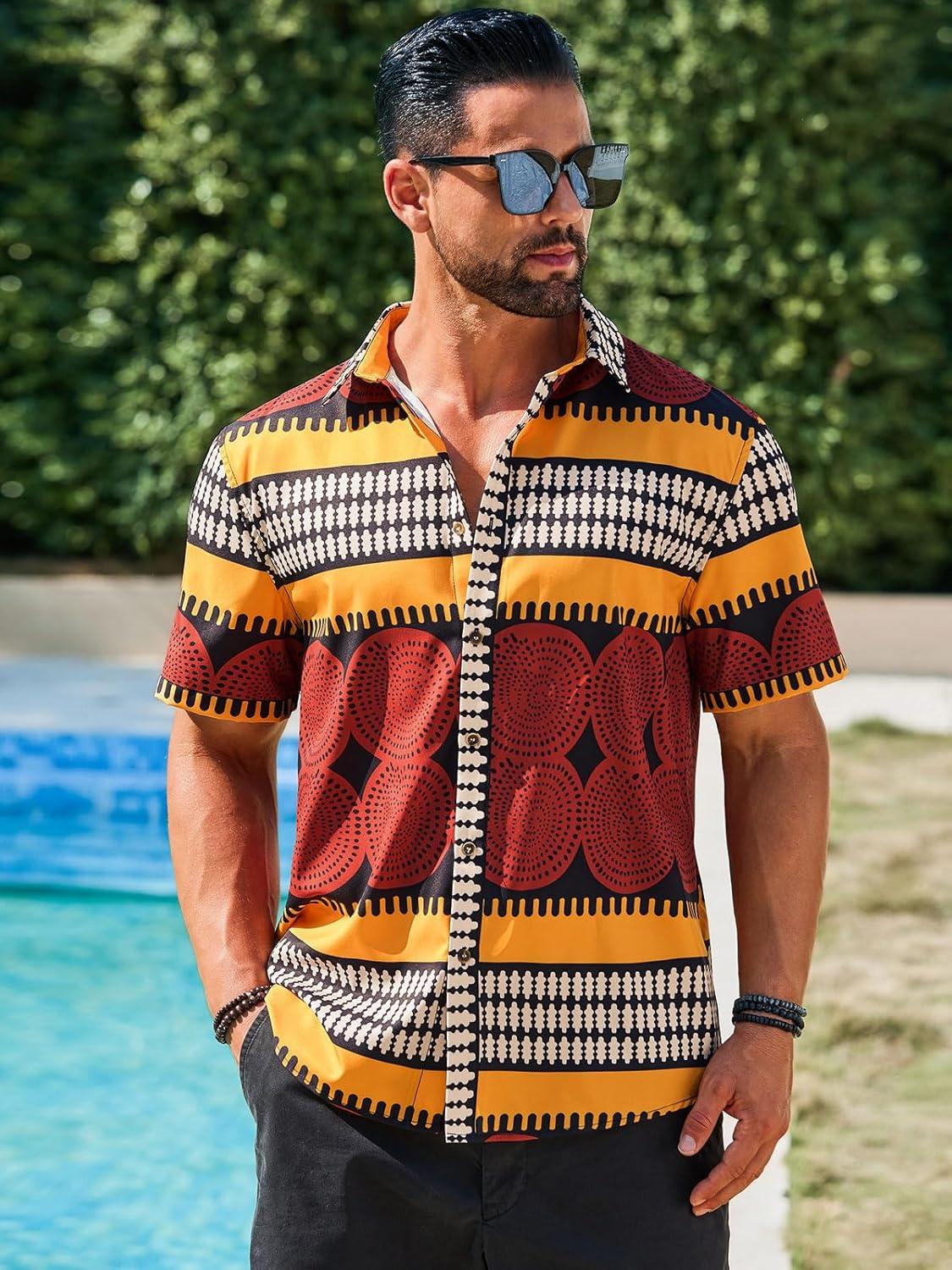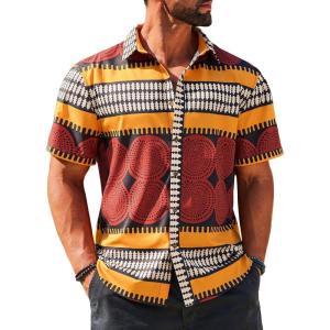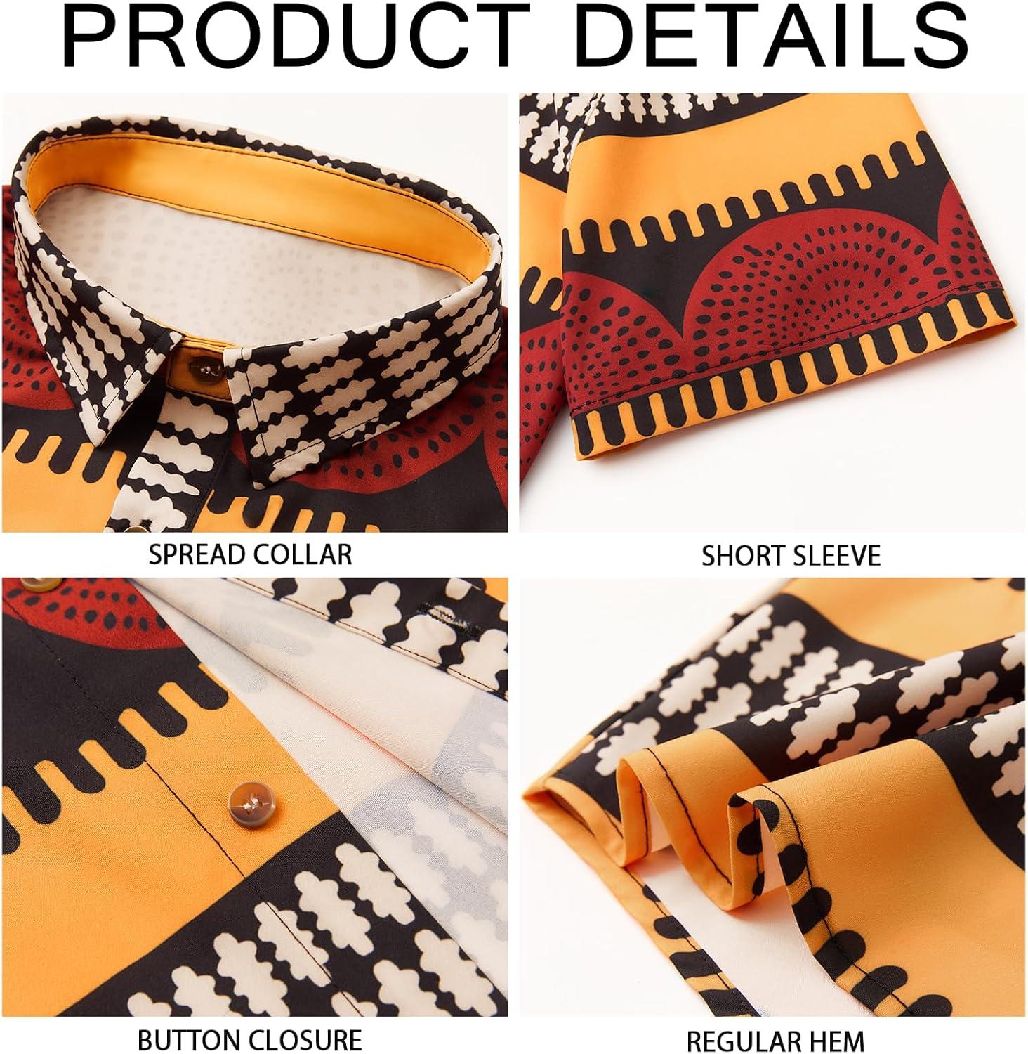 • Runcati Mens Short Sleeve Shirts Button Down African Traditional Pattern Dashiki Shirt Casual Vintage Floral Hippie Tops(Yellow)