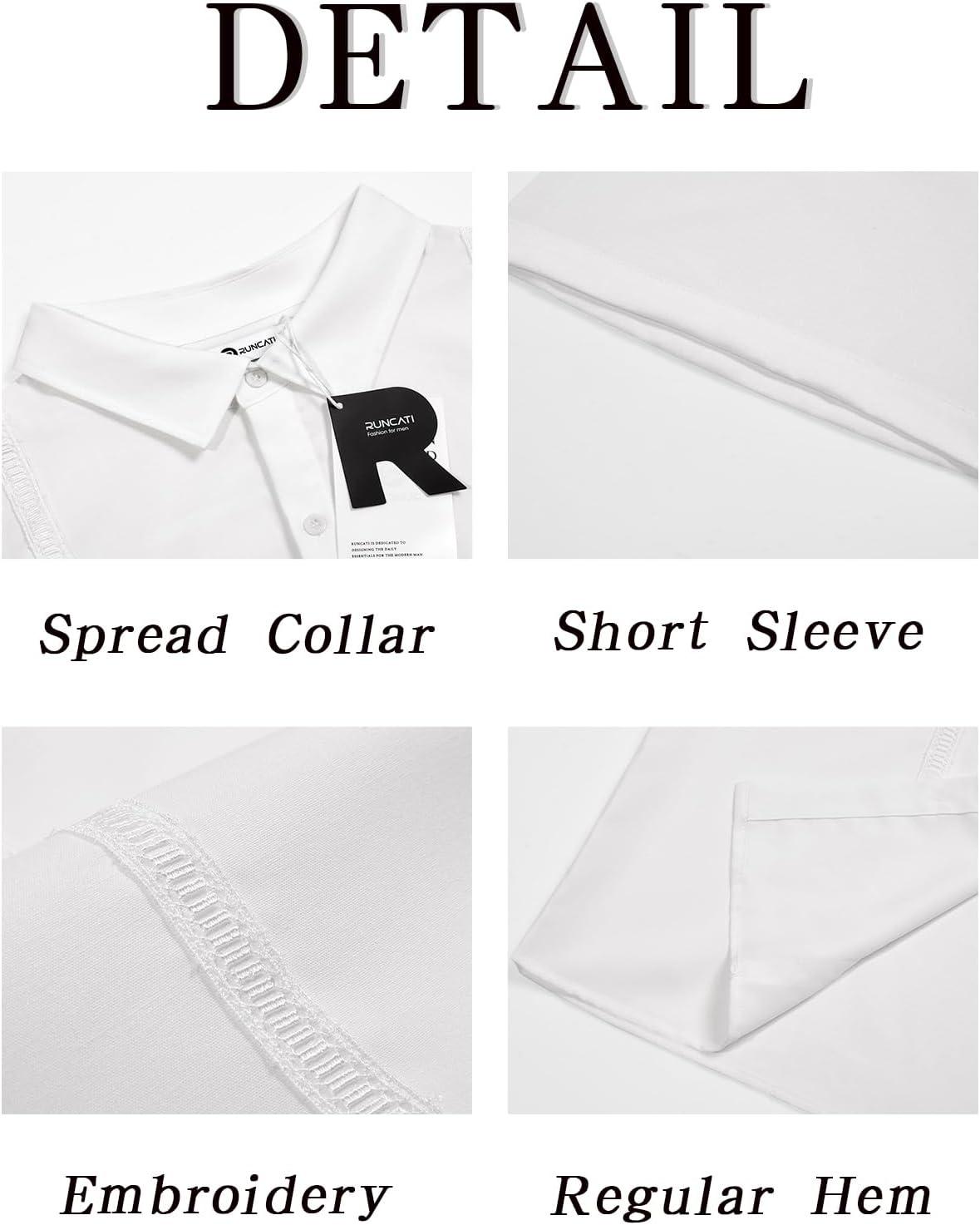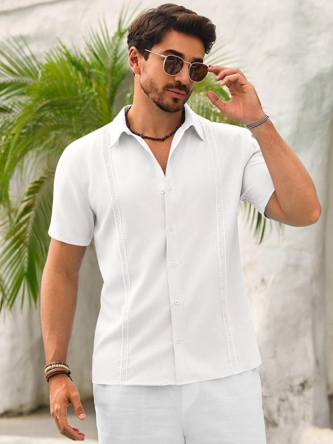 Runcati Mens Button Down Guayabera Shirts Short Sleeve Cuban Casual Summer Linen Shirt Beach Mexican Hippie Wedding Tops(White)