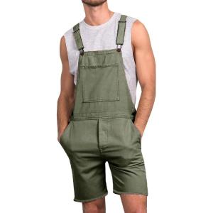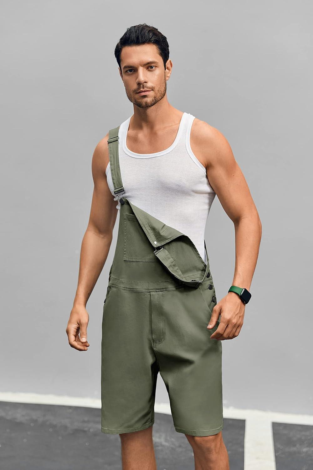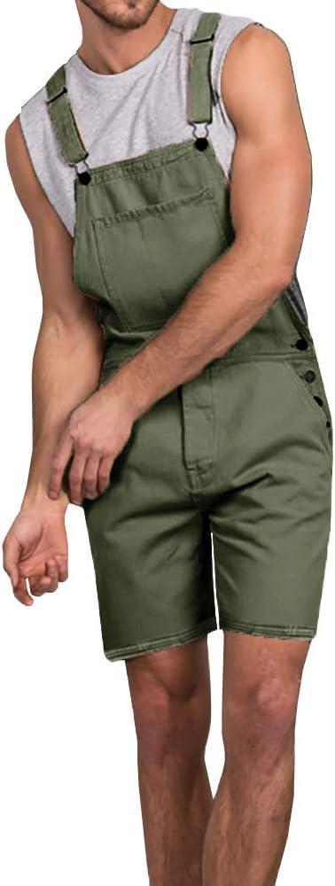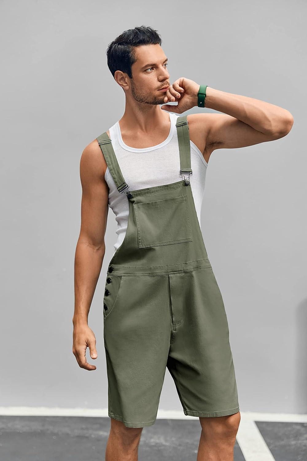 Runcati Mens Casual Bib Overall Shorts Lightweight Cotton Loose Fit Denim Jumpersuit Walkshort Pockets Rompers(Army Green)