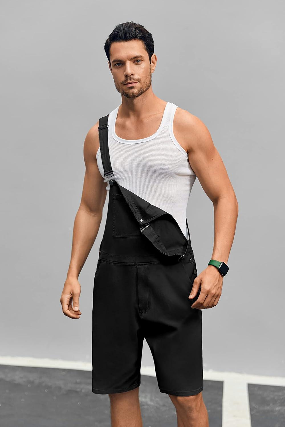 Runcati Mens Casual Bib Overall Shorts Lightweight Cotton Loose Fit Denim Jumpersuit Walkshort Pockets Rompers(Black)