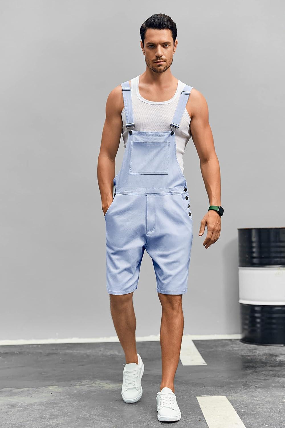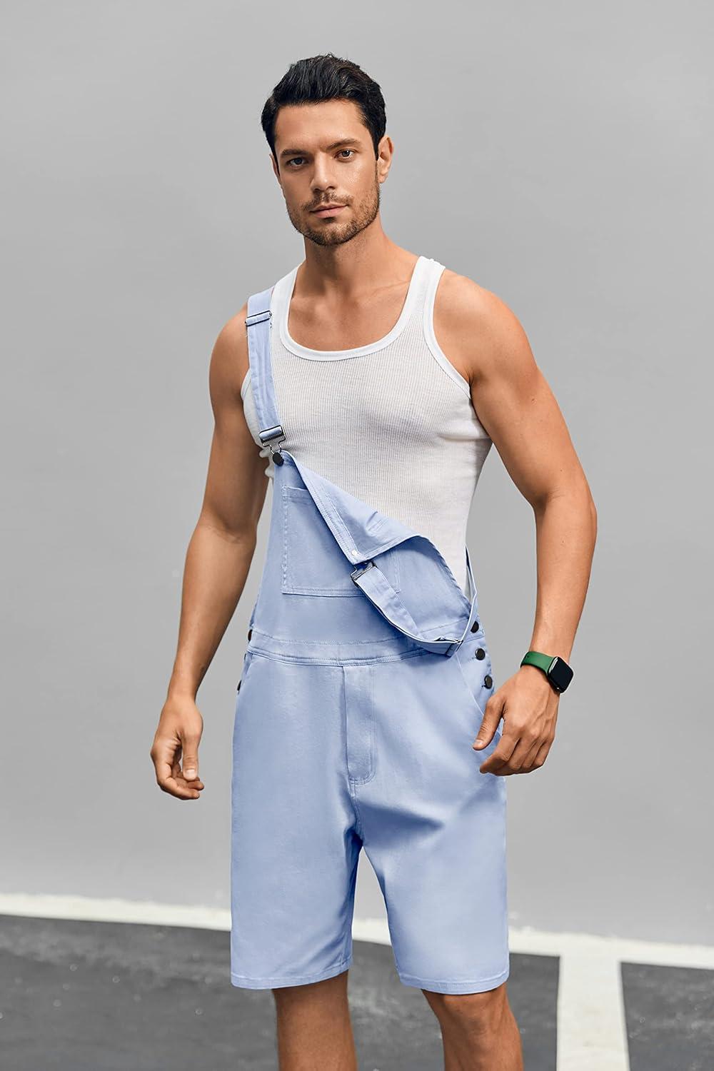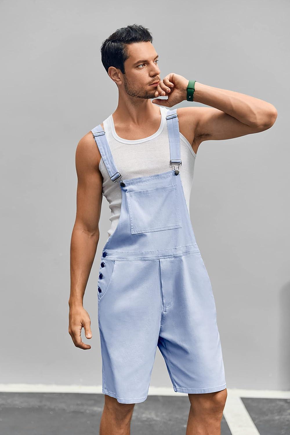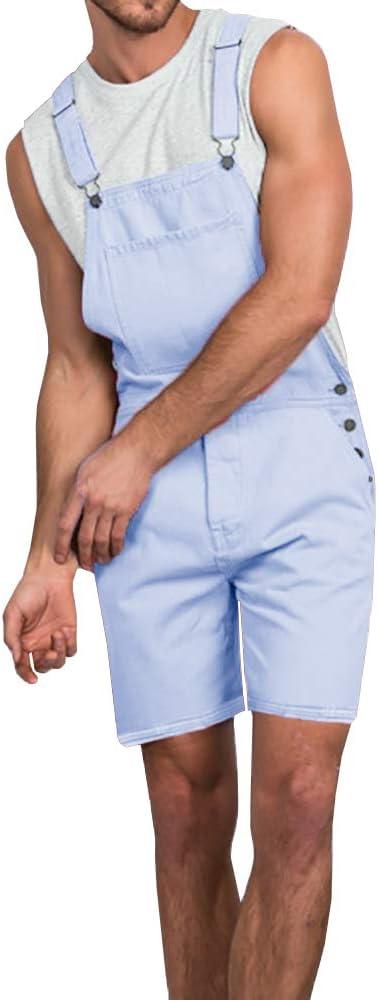 Runcati Mens Casual Bib Overall Shorts Lightweight Cotton Loose Fit Denim Jumpersuit Walkshort Pockets Rompers(Blue)