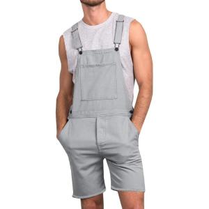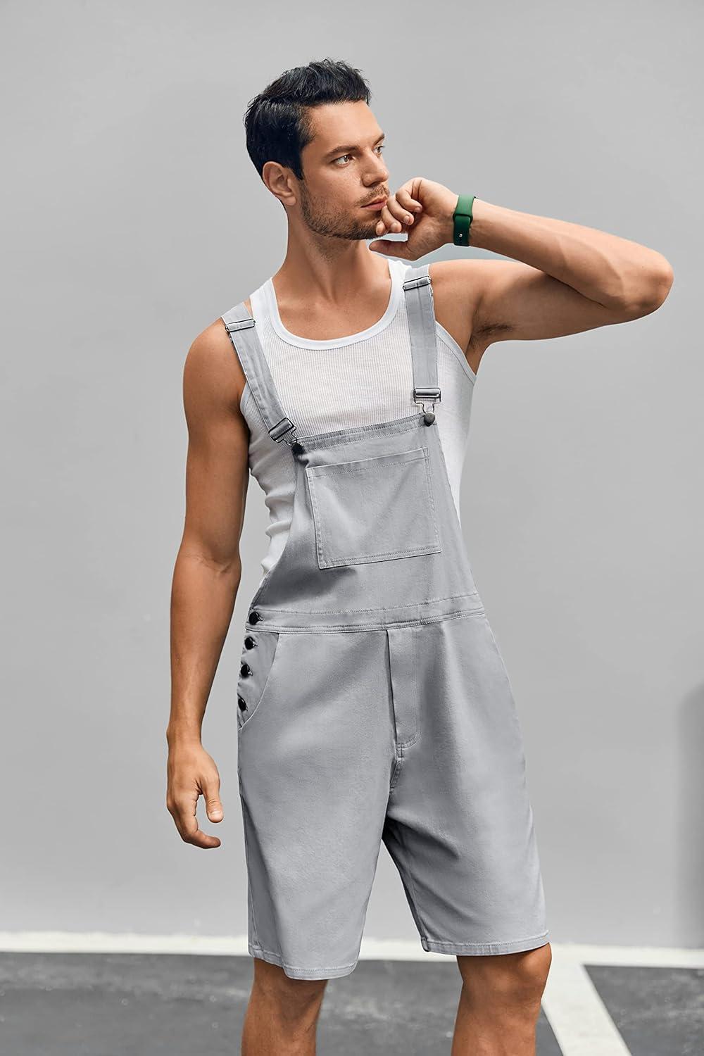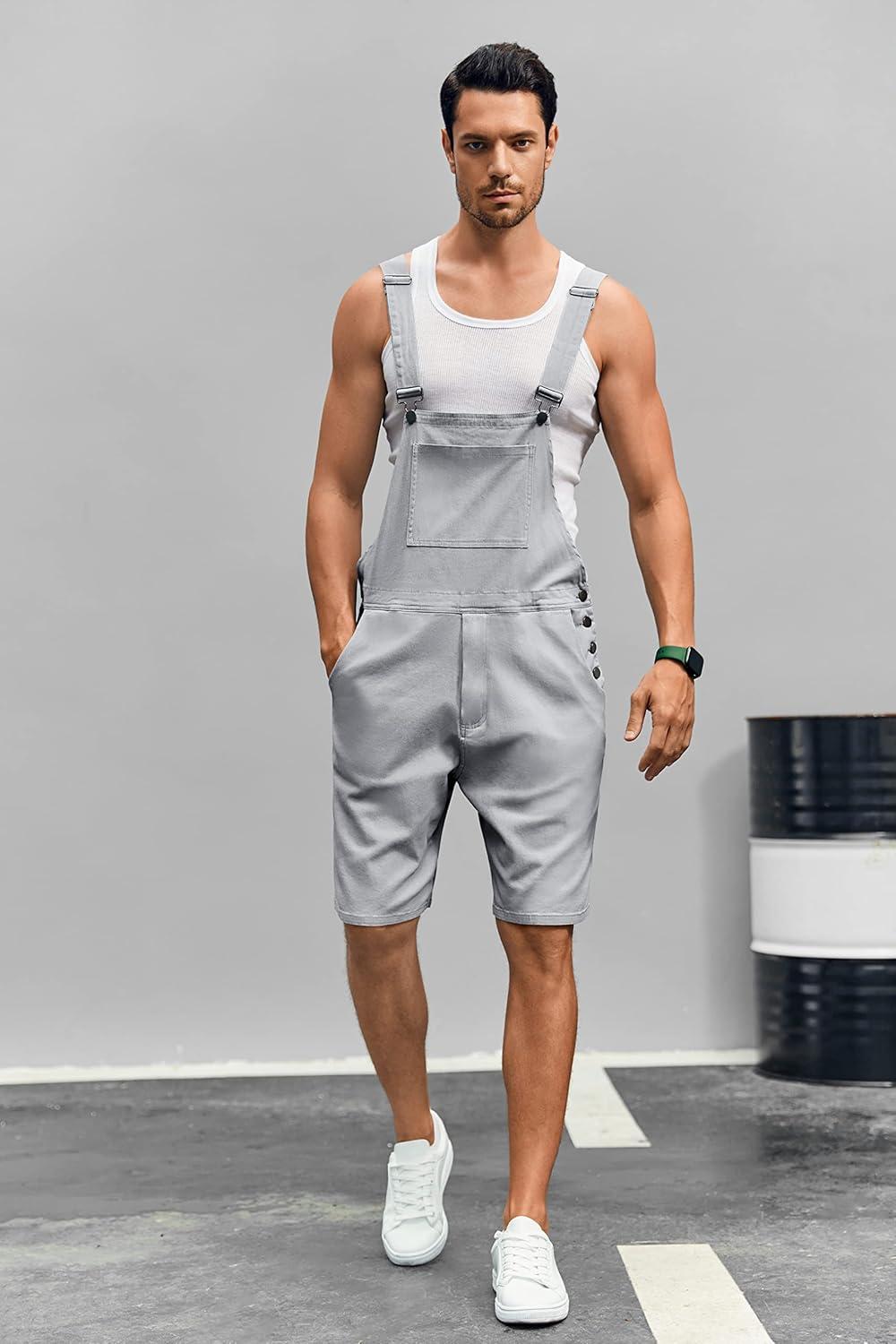 Runcati Mens Casual Bib Overall Shorts Lightweight Cotton Loose Fit Denim Jumpersuit Walkshort Pockets Rompers(Gray)