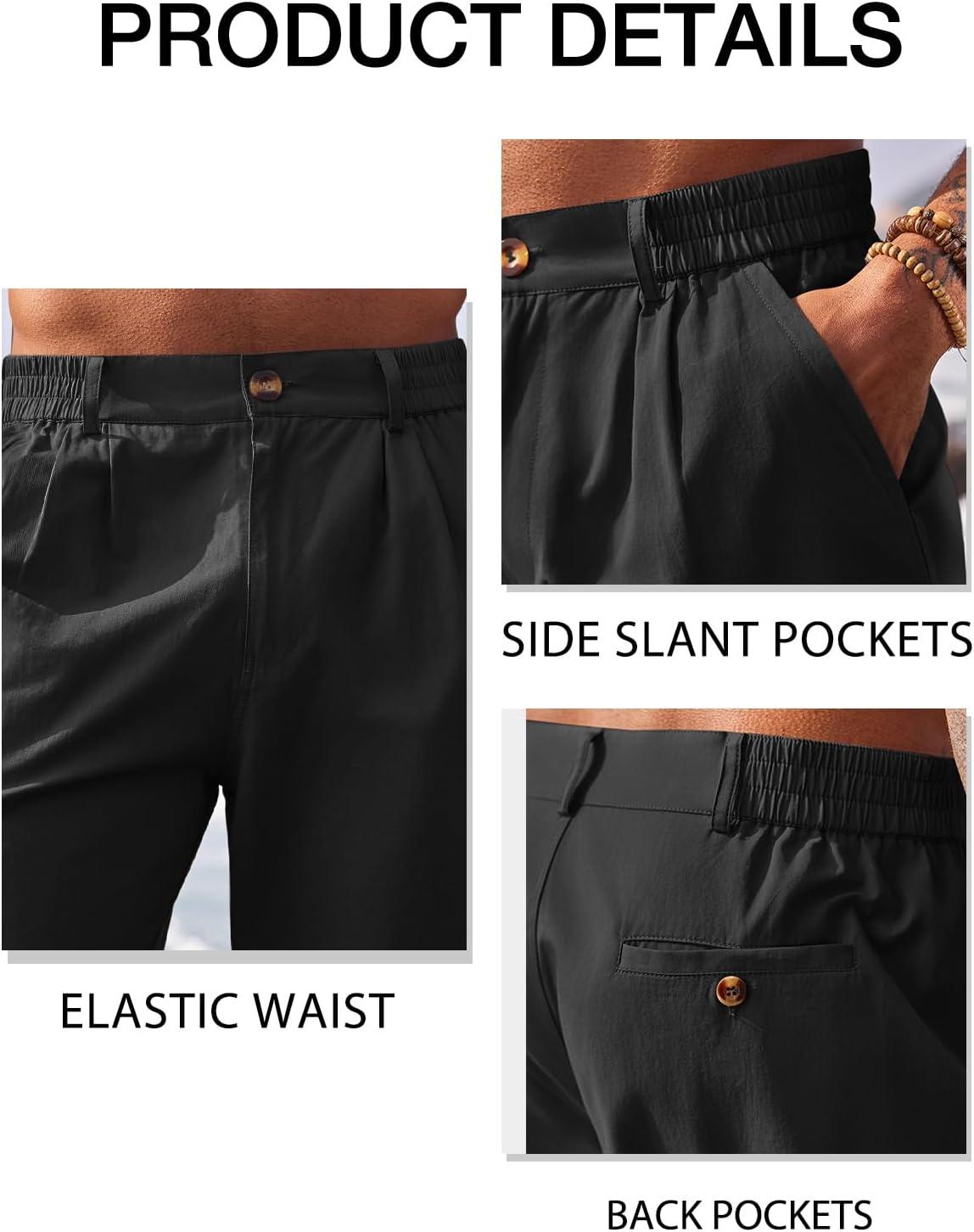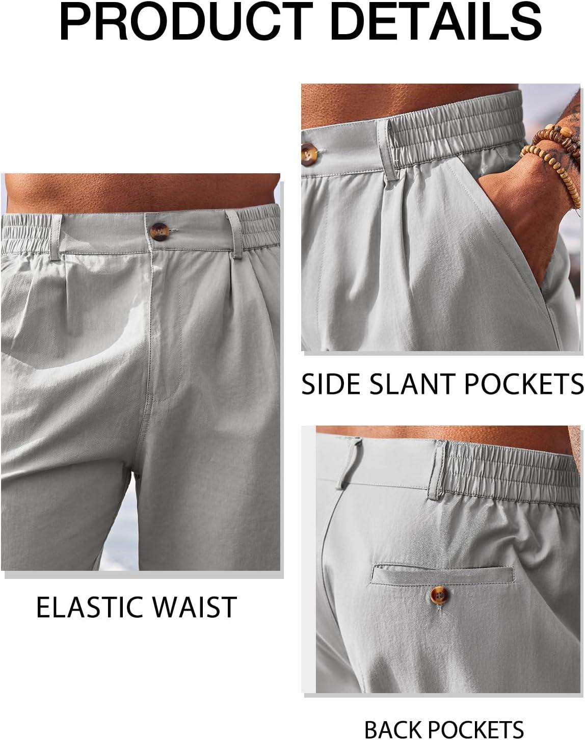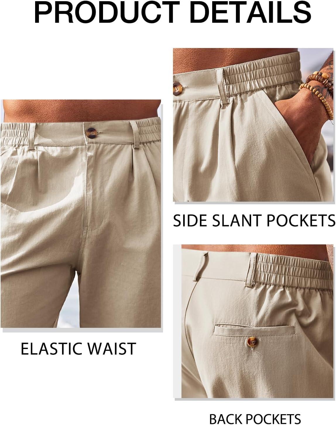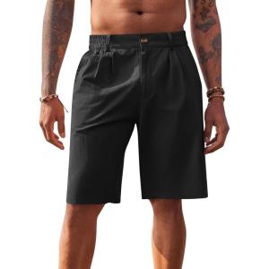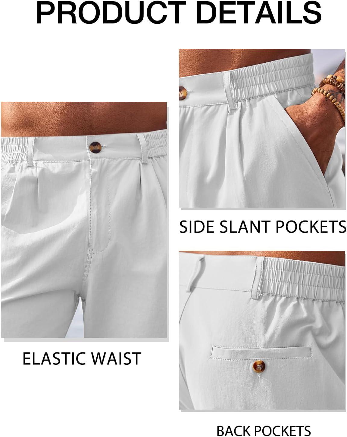 Runcati Mens Cotton Linen Flat Front Shorts Button Up Closure Elastic Waist Regular Fit Summer Beach Shorts