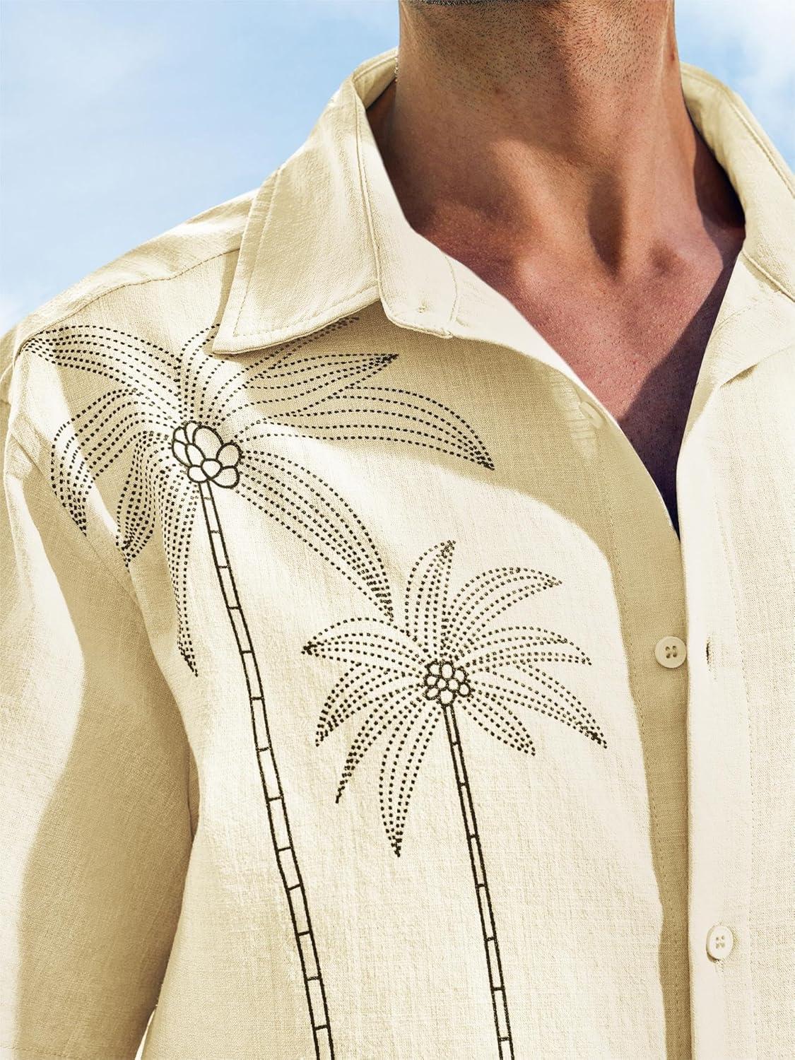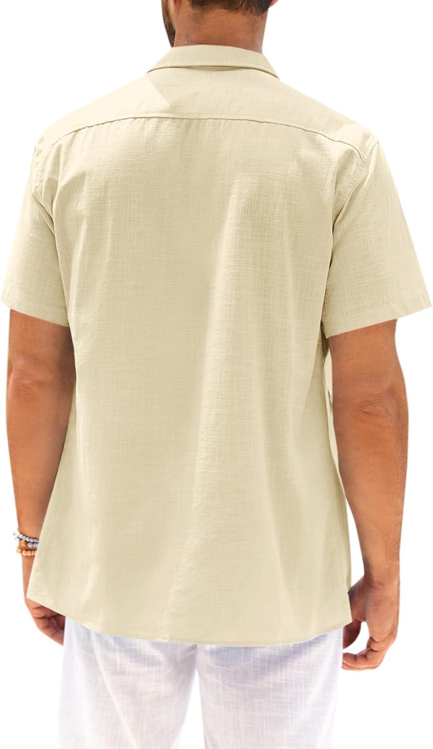 Runcati Mens Hawaiian Shirt Short Sleeve Button Down Summer Beach Vacation Cotton Linen Shirts(Beige)